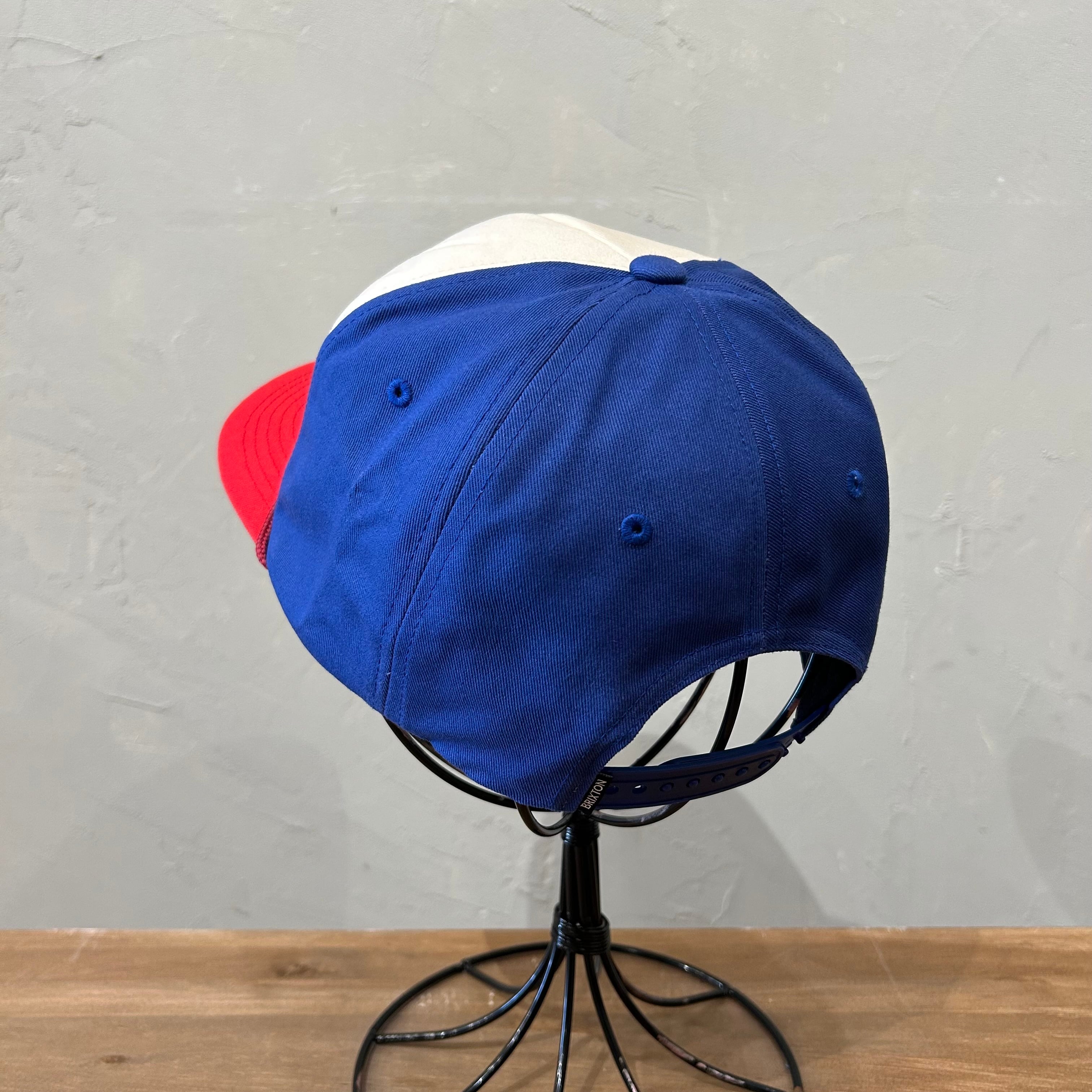 フロントのキナリのボディーに配色の効いたトラッカーキャップスタイル。