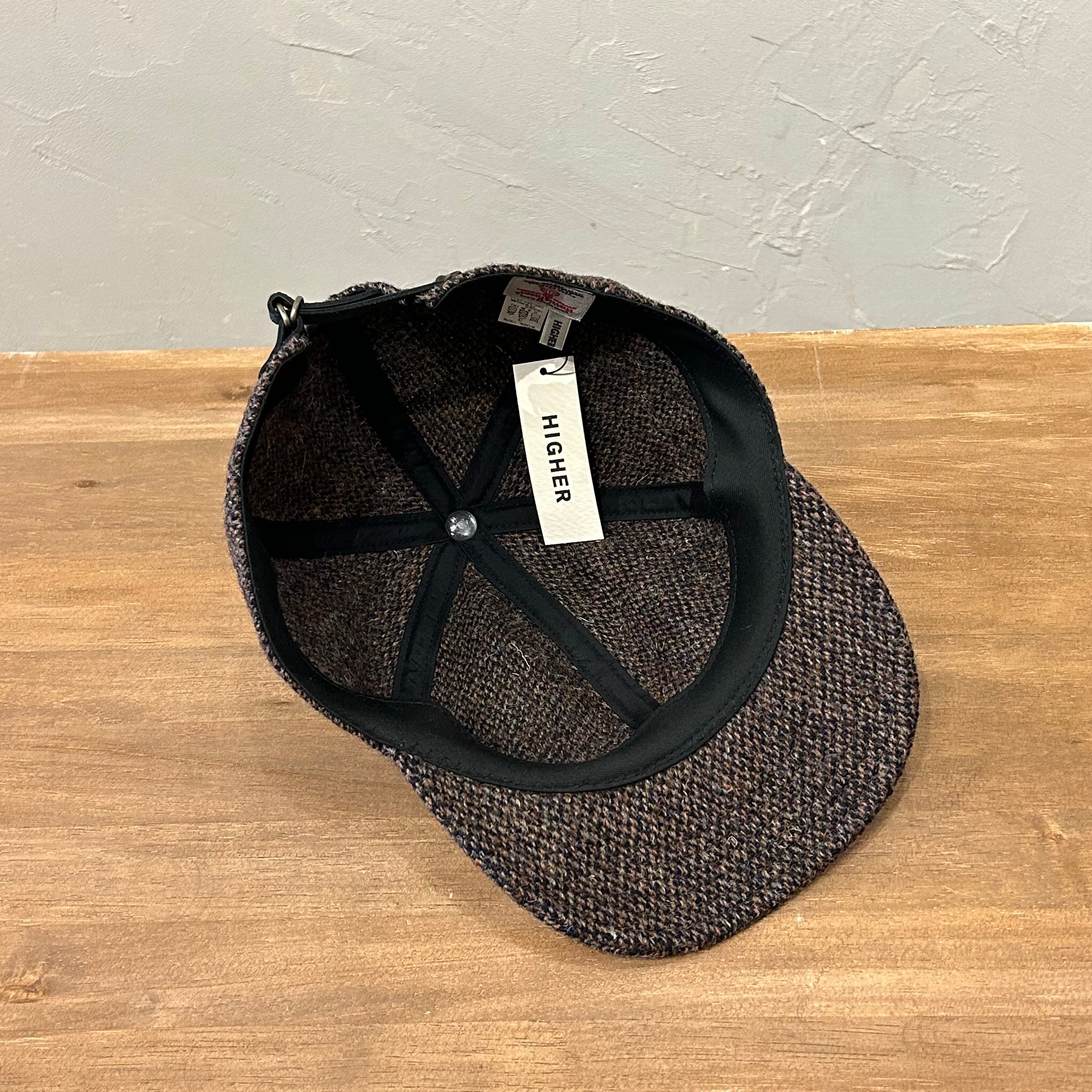 オートミールの粒のようなメランジ感が特徴のファブリックを使用し、”HIGHER”定番のキャップ型に。