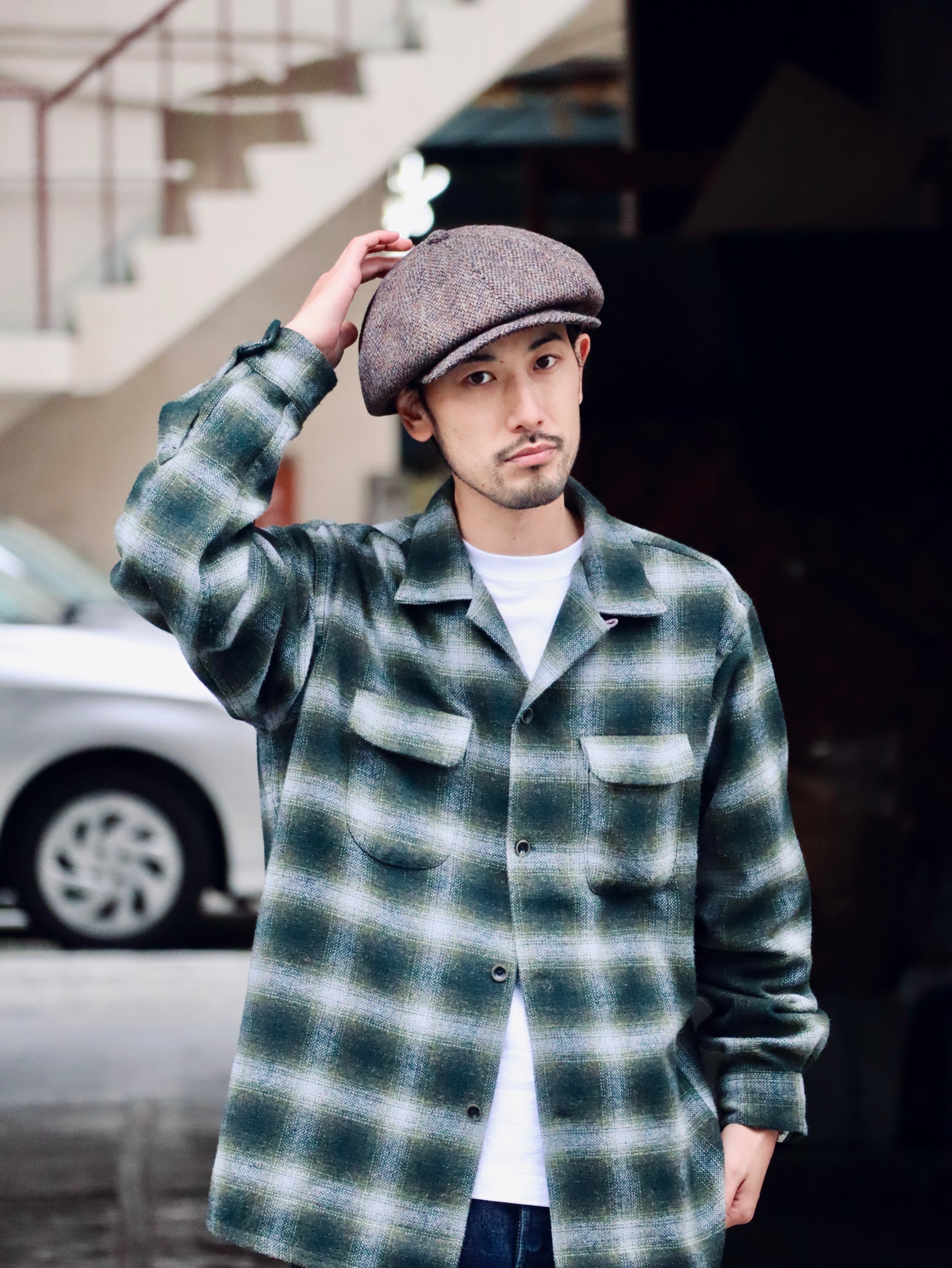 オートミールの粒のようなメランジ感が特徴のファブリックを使用し、”HIGHER”定番のキャスケットに。