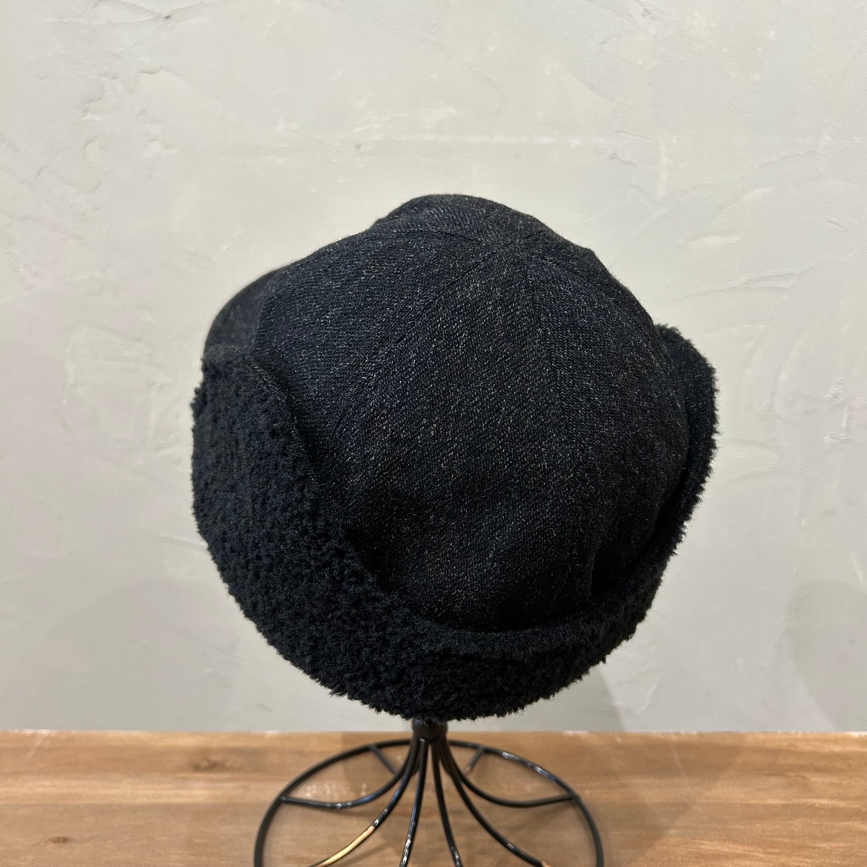 同色のボア仕様にした耳当てはクラウンや顔に自然に沿うよう角度やダーツの入れ方にこだわった立体的なシルエット。