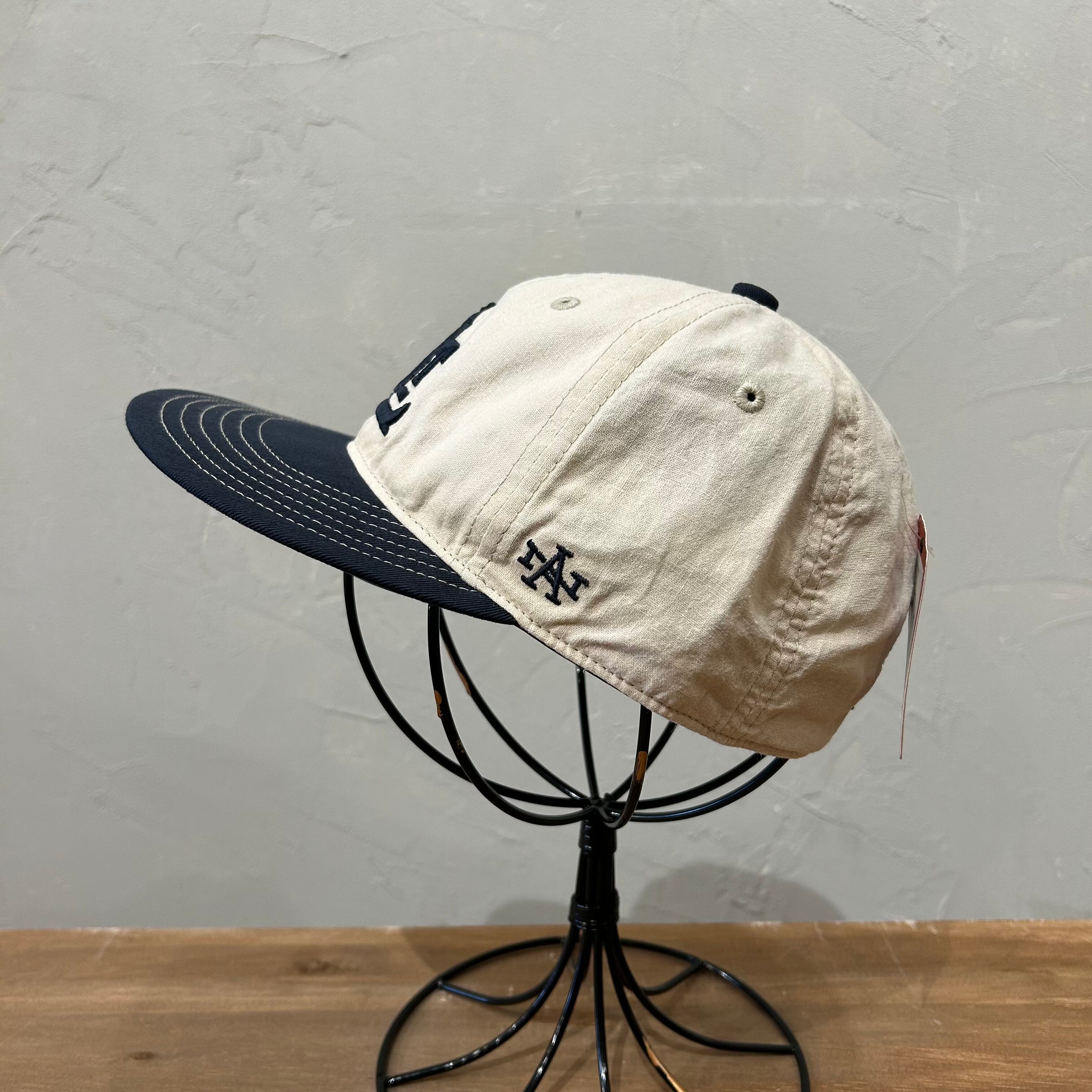 クラウンにリネン素材を使った2トーンキャップ。