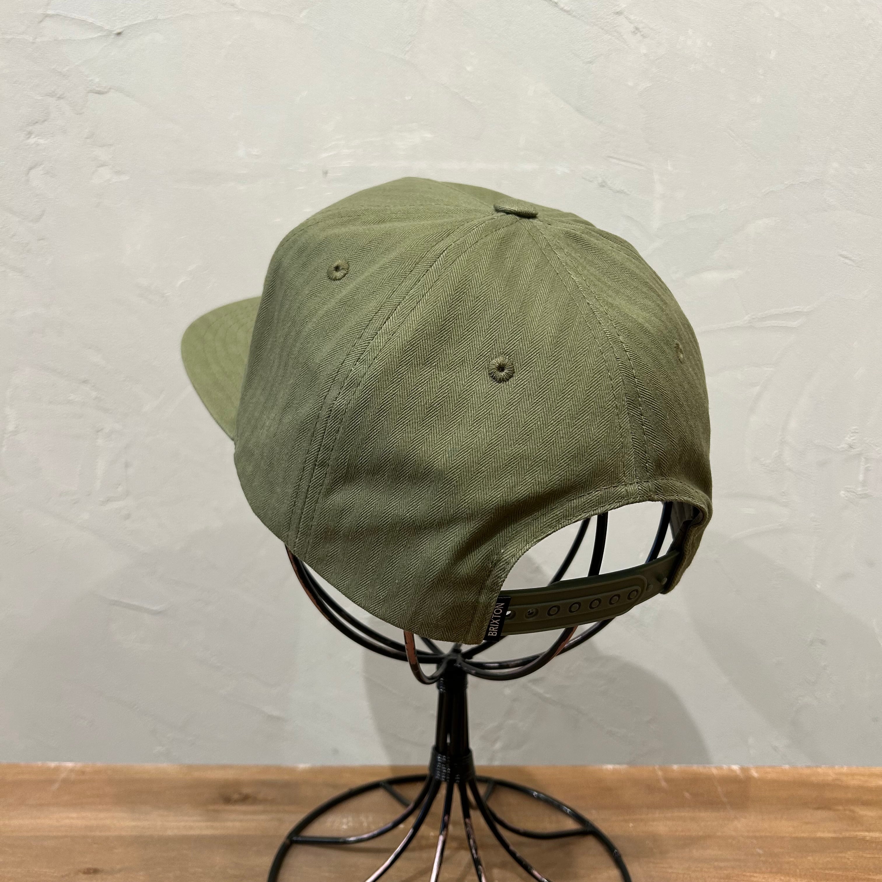 ヘリンボーン生地の表情を活かし、フロントネームのシンプルなデザインに落とし込んだスナップバックキャップ。