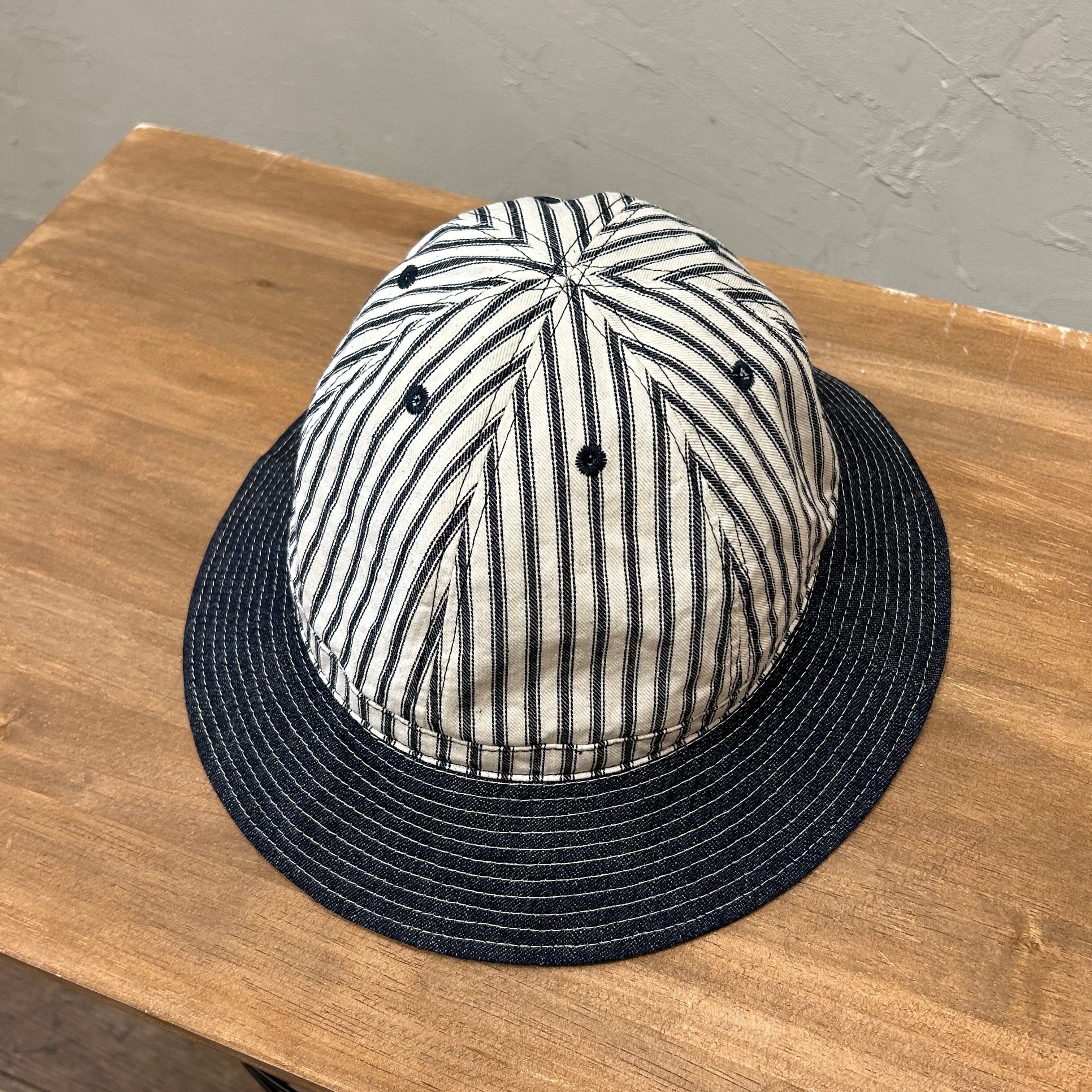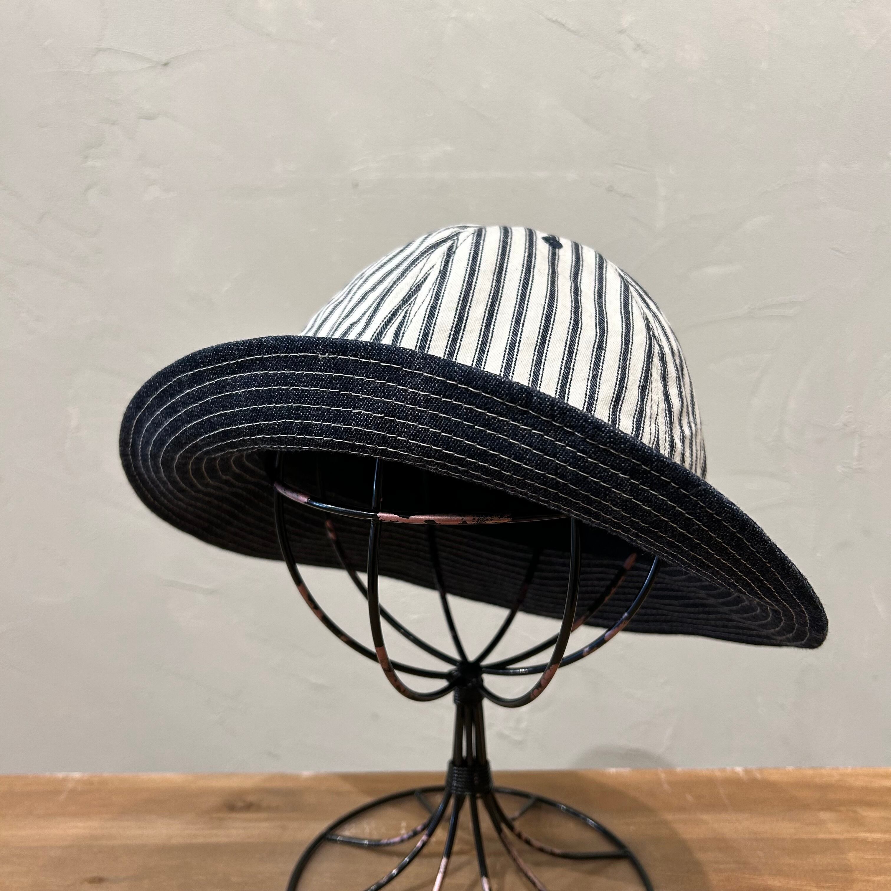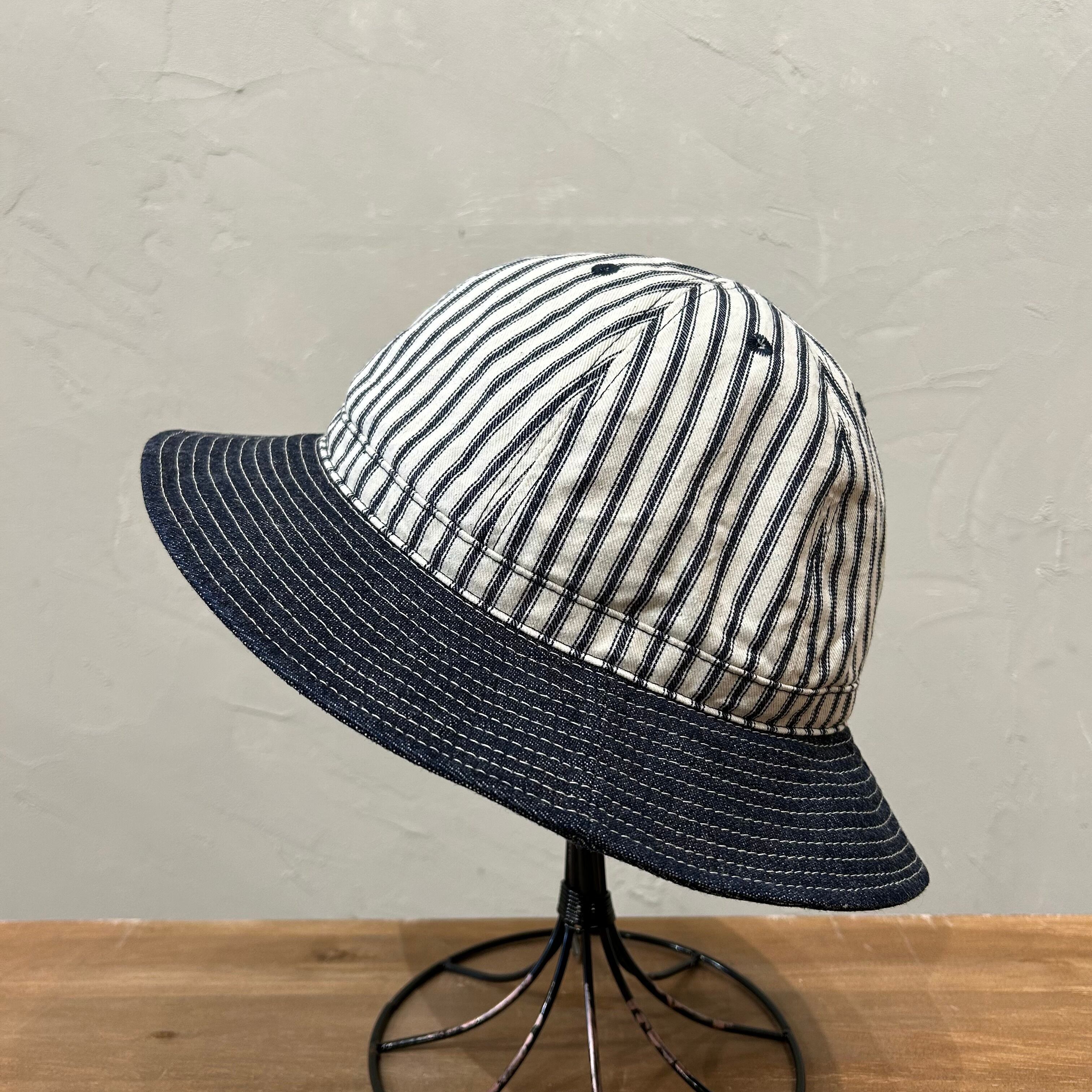 高密度に織られたインディゴ染め9ozヒッコリーを使用したファティーグ型ハット。