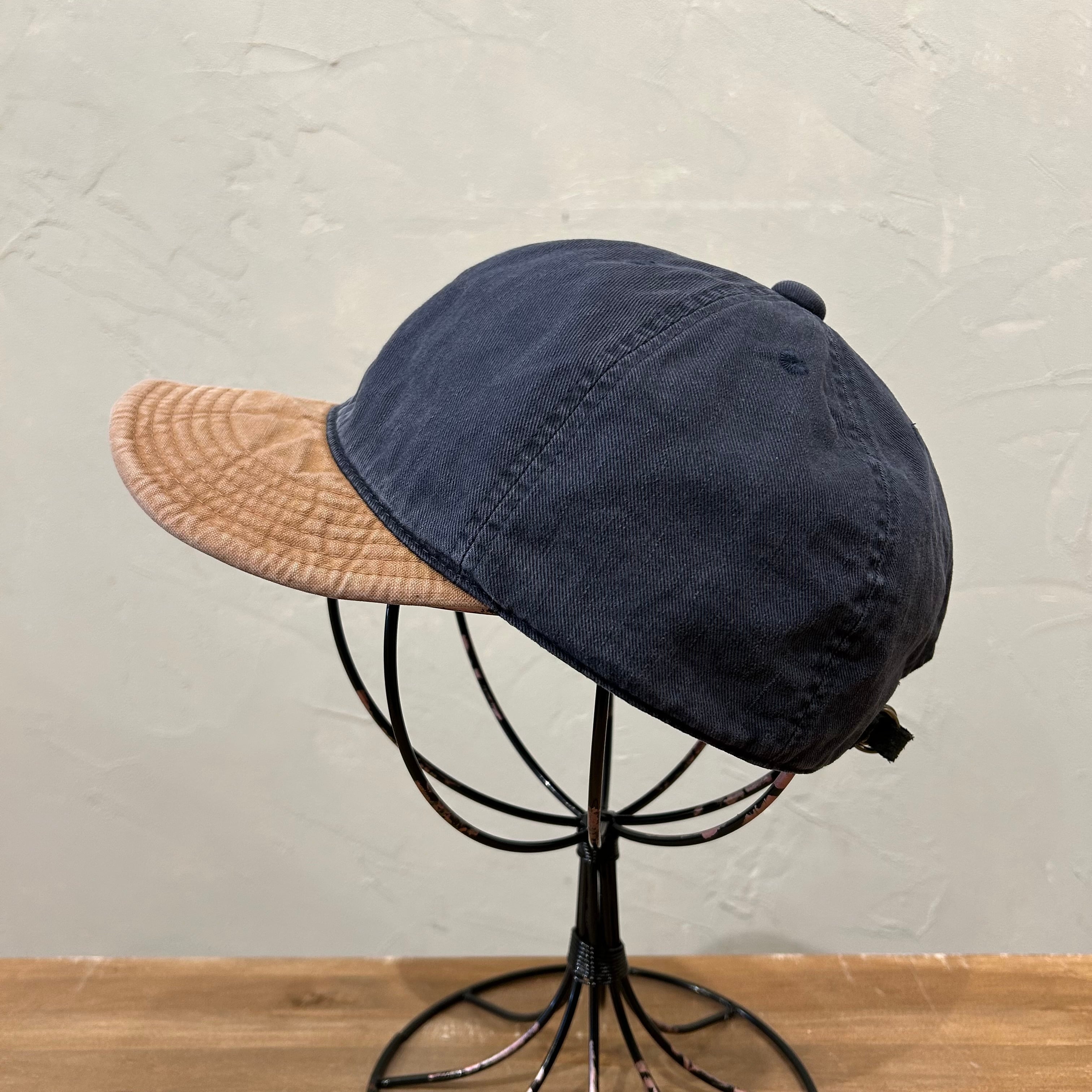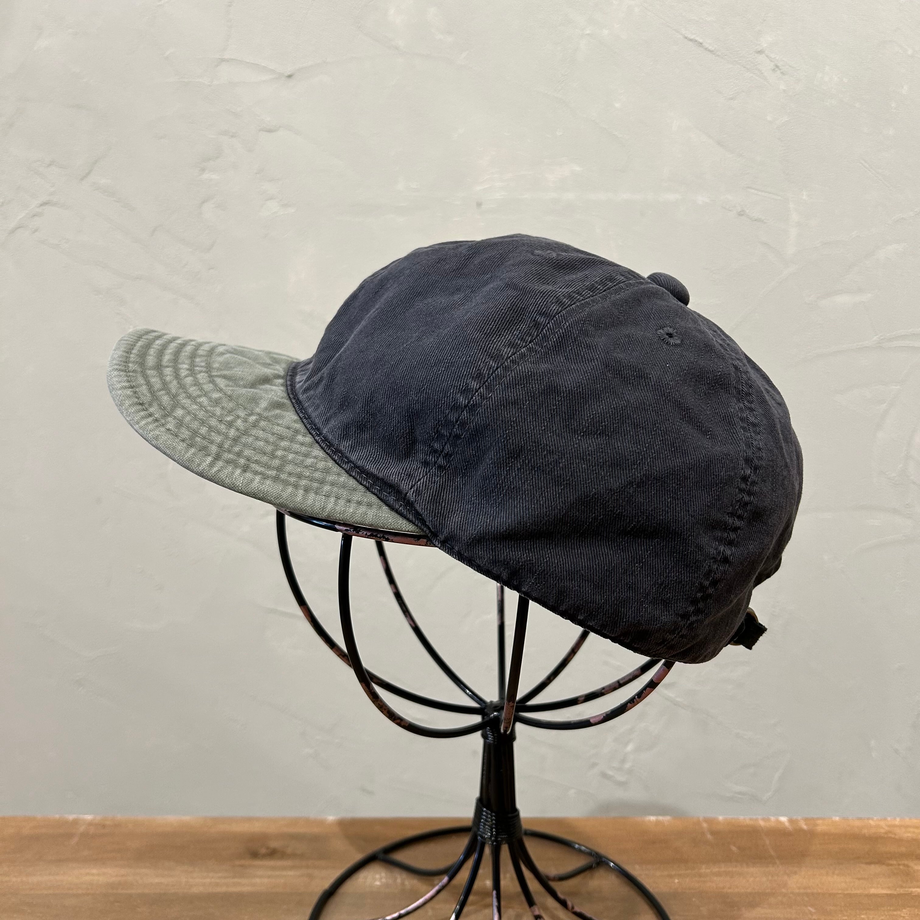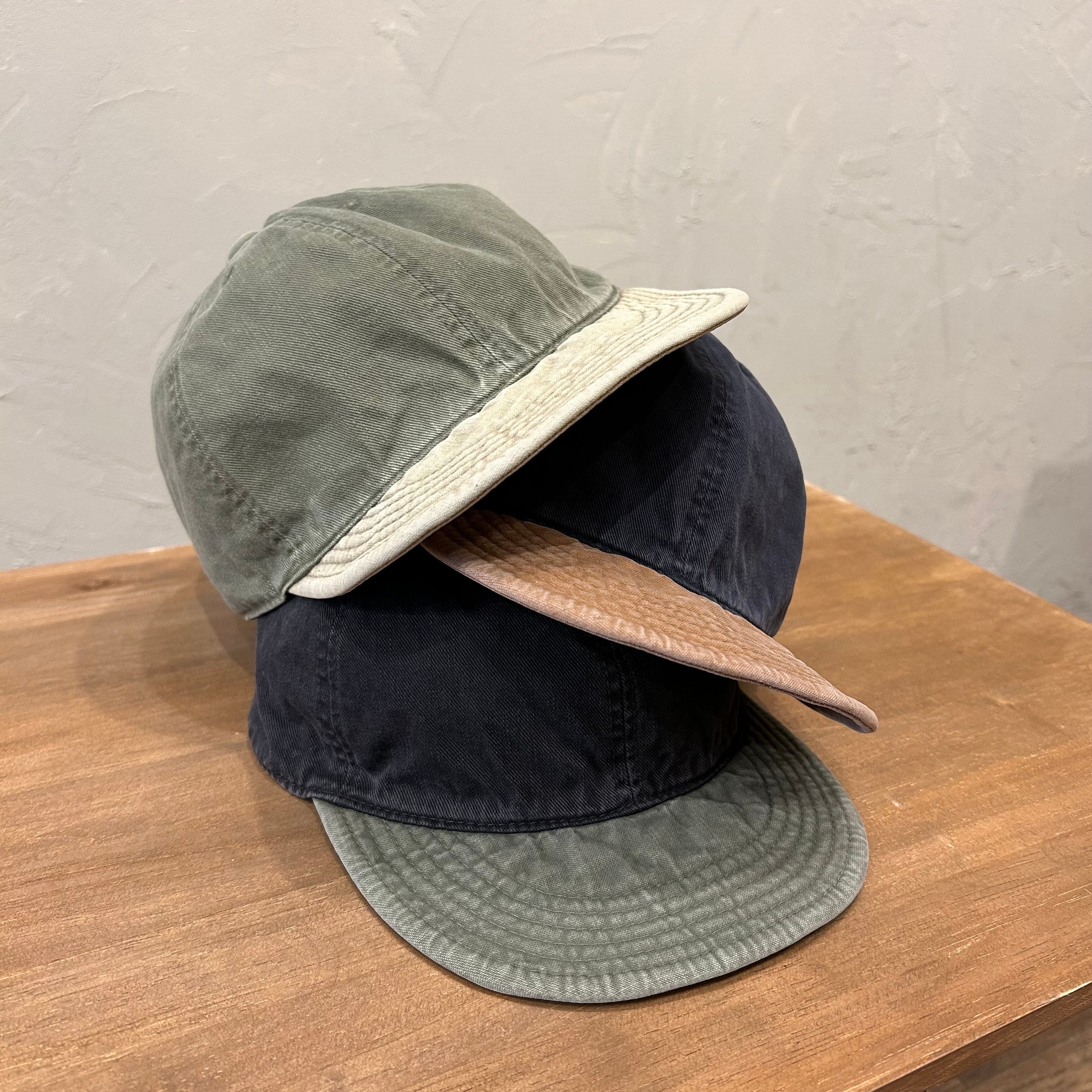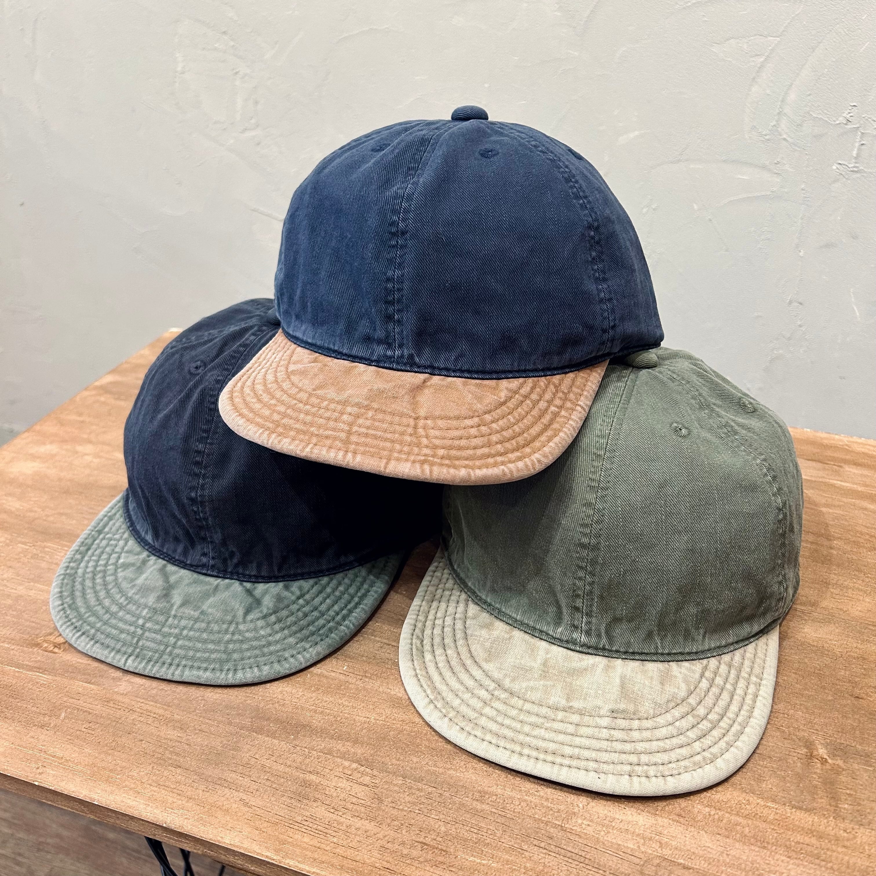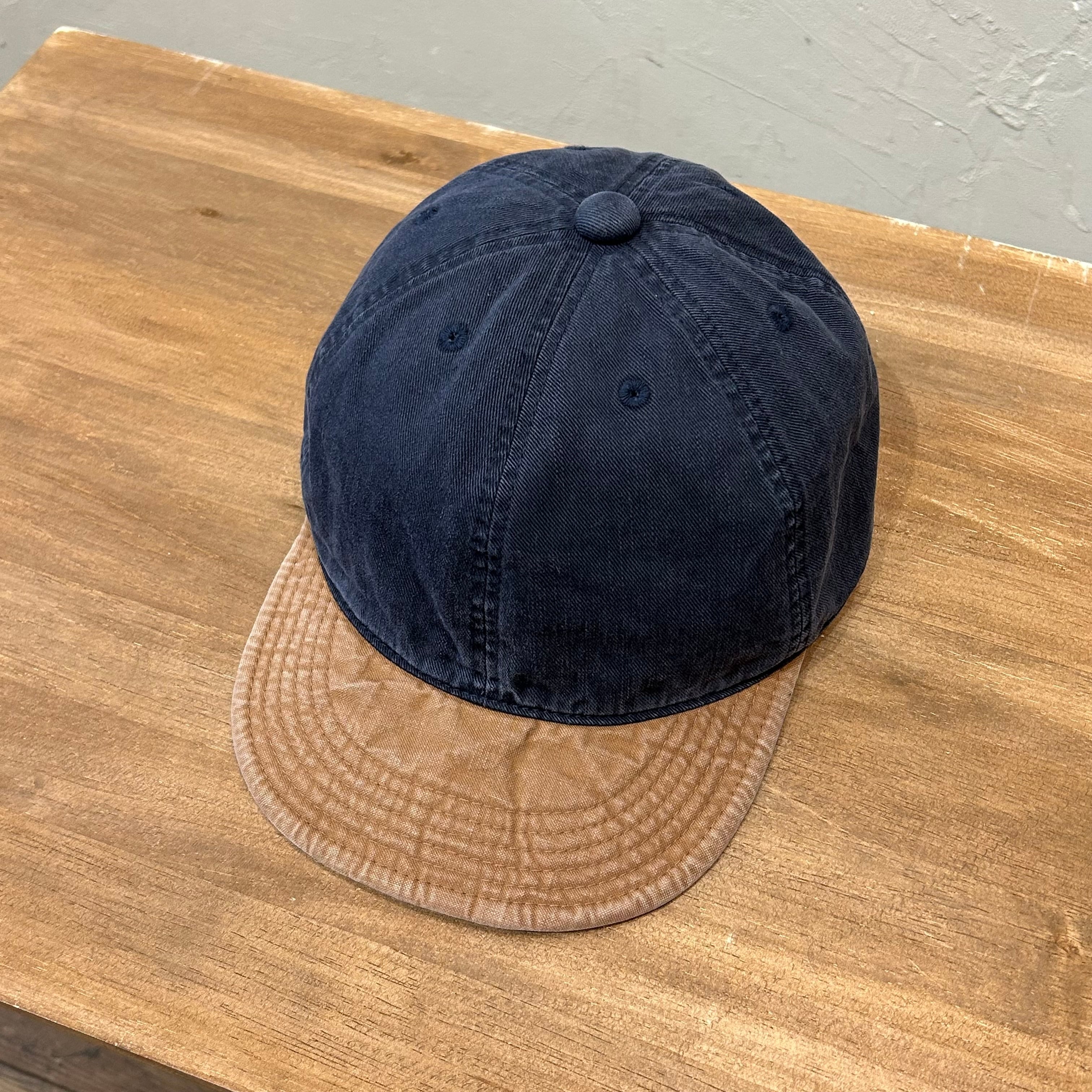 クラウンにチノ素材、ブリムにオックス素材といった2種類の異組織生地を使用した配色キャップ。