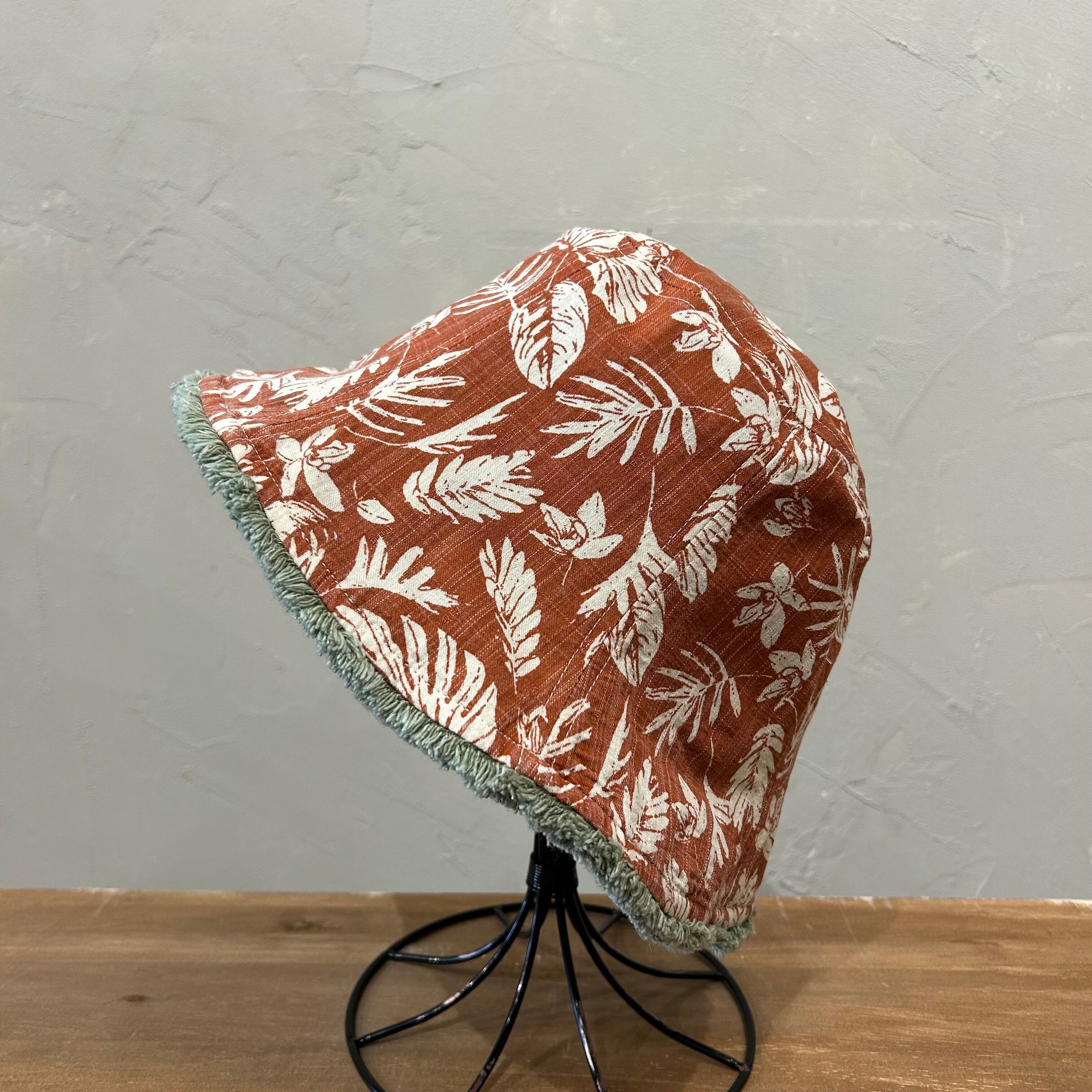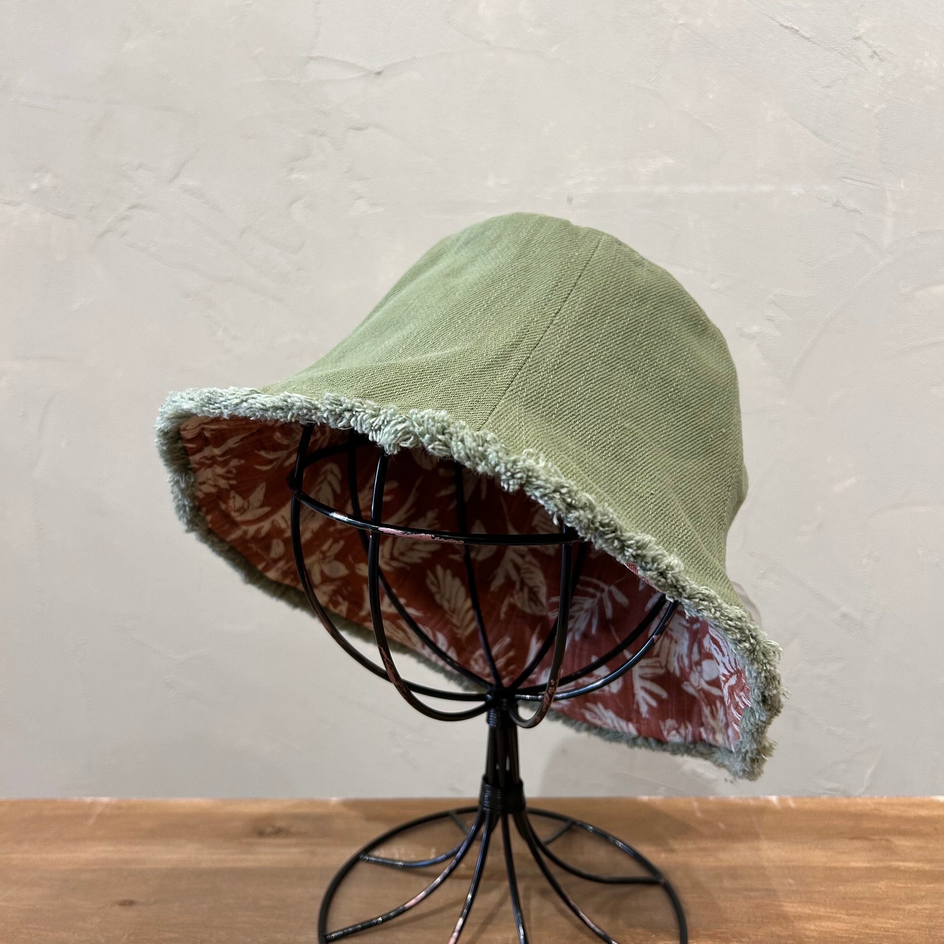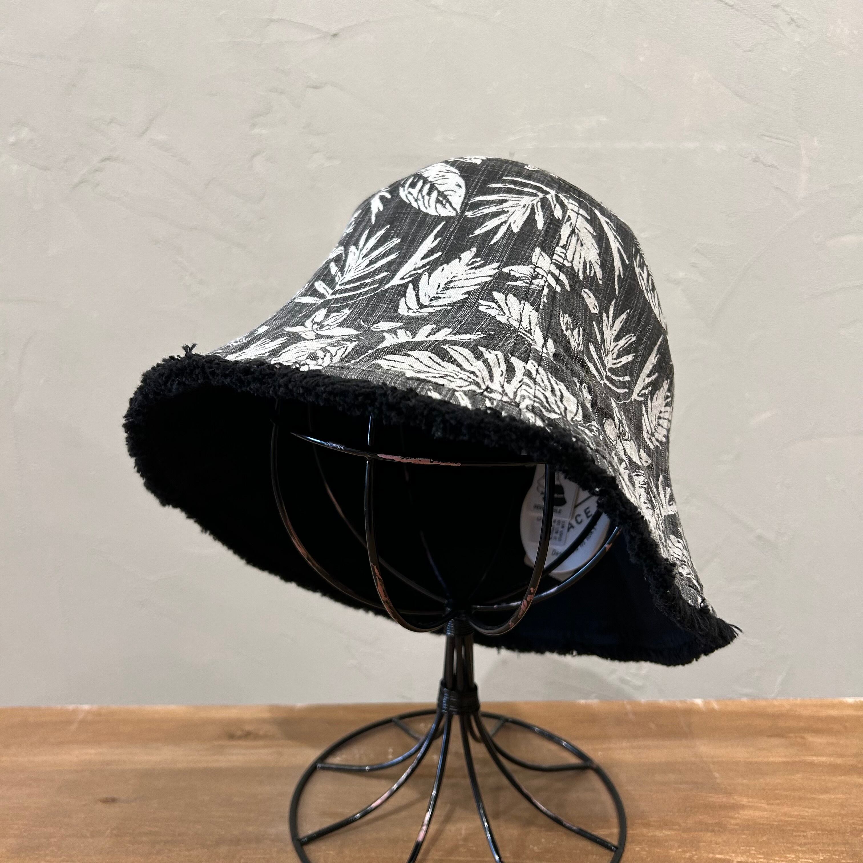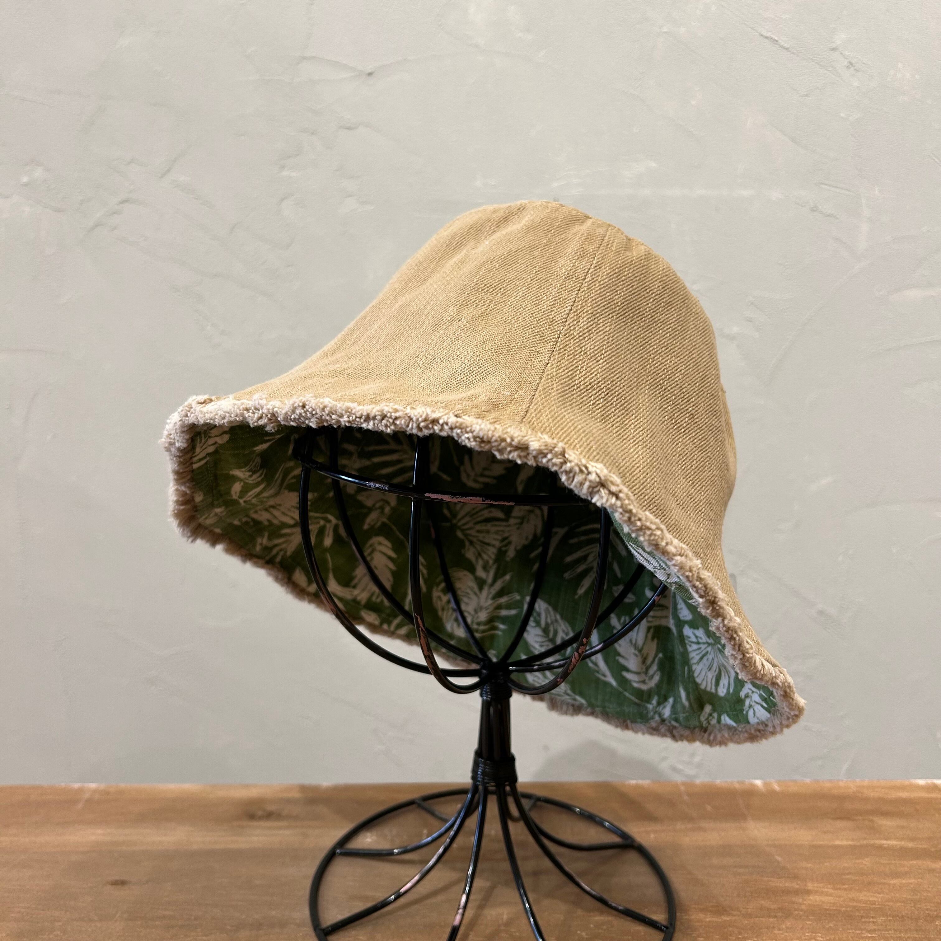 バケットハットとチューリップハットを合わせたようなリバーシブルハット。