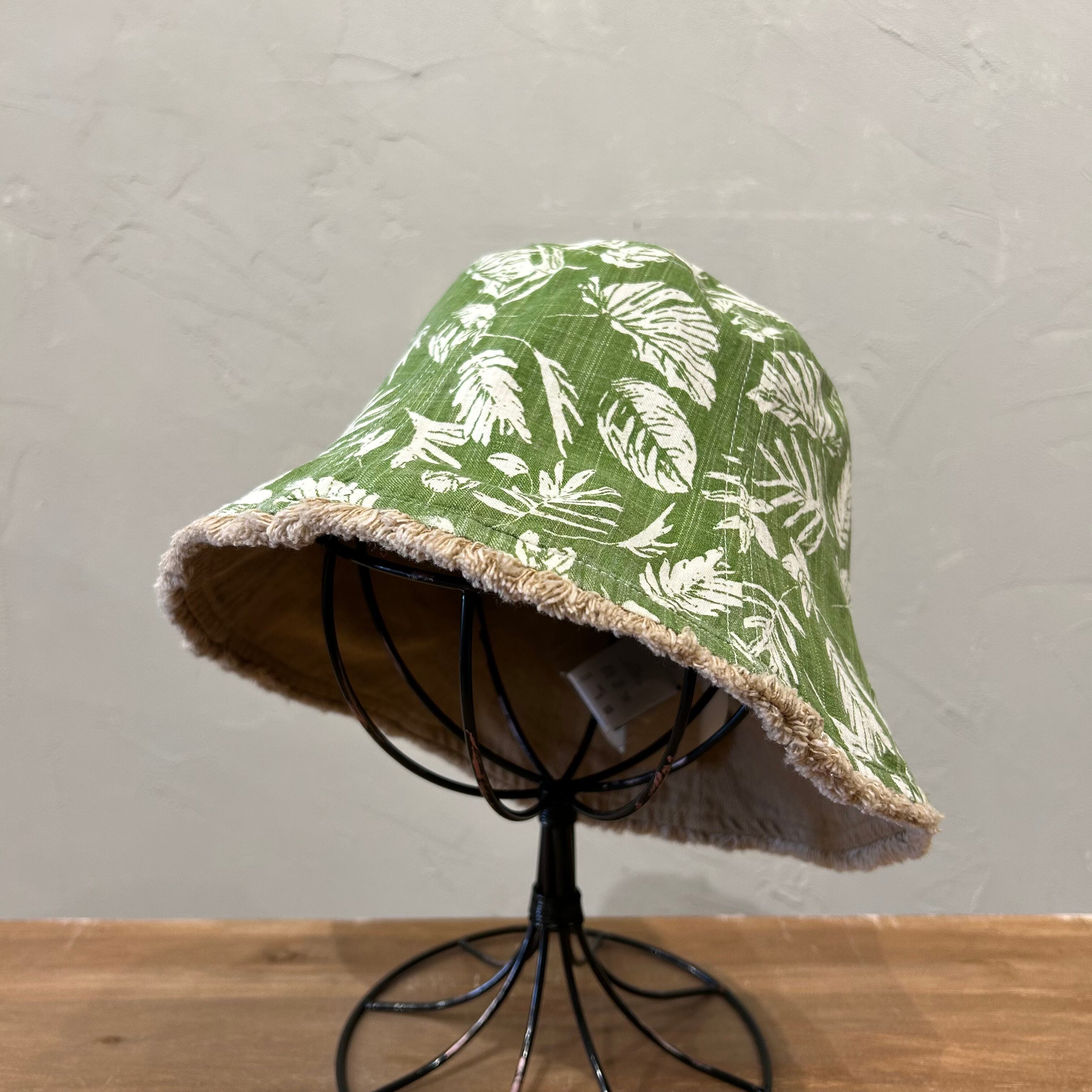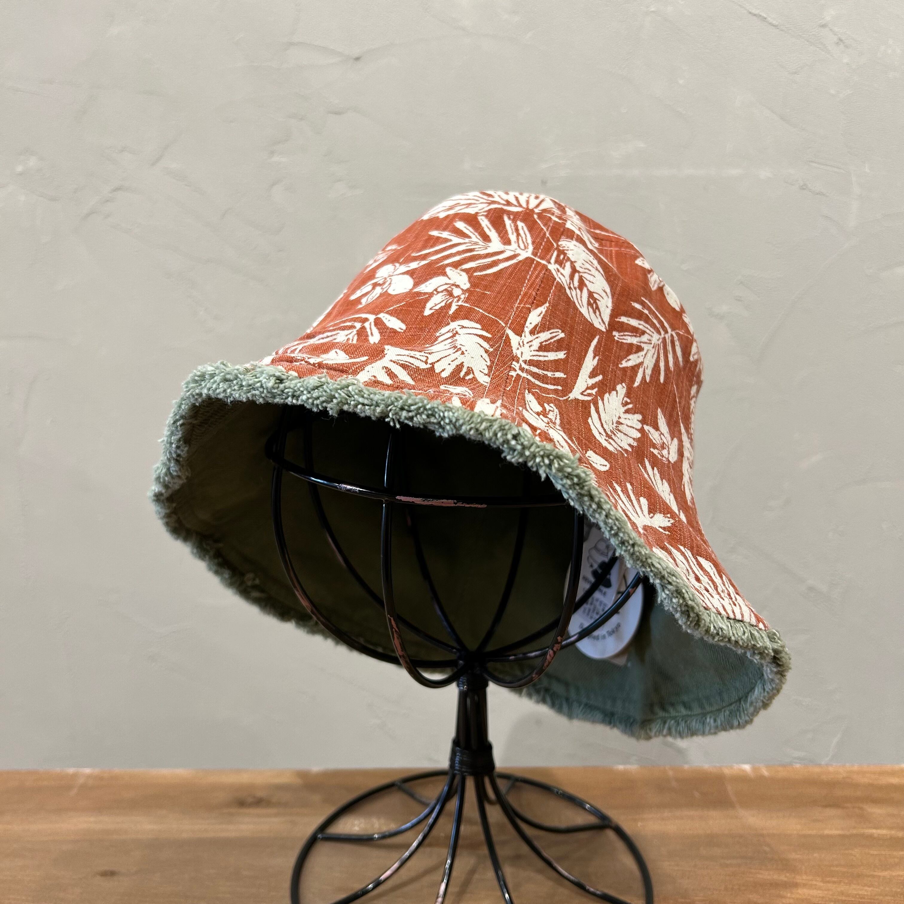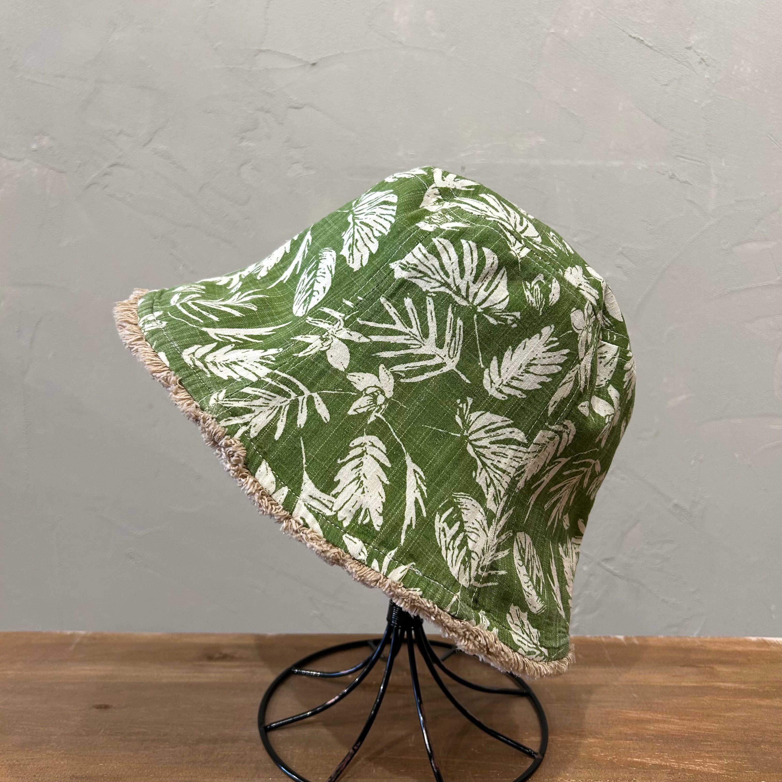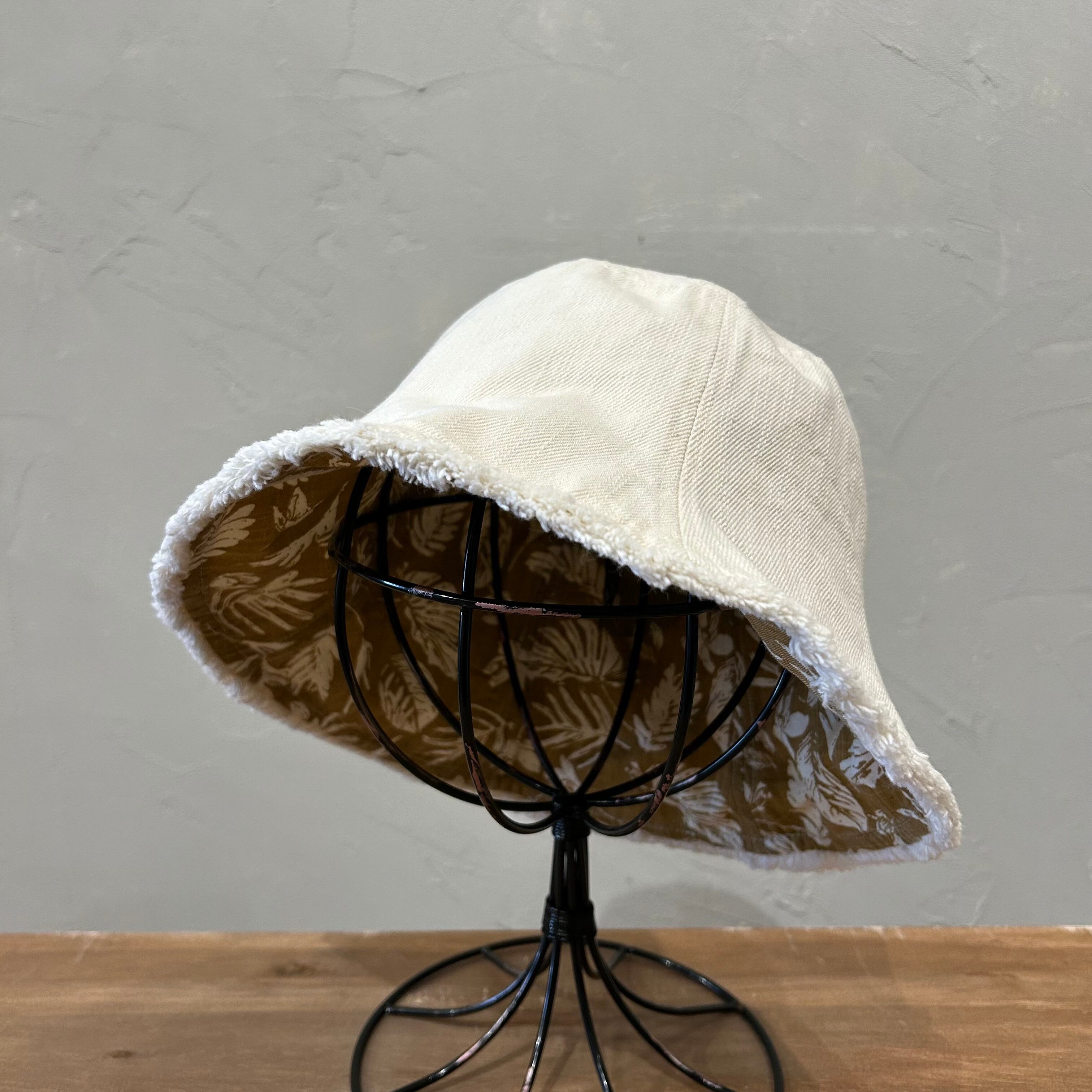 バケットハットとチューリップハットを合わせたようなリバーシブルハット。