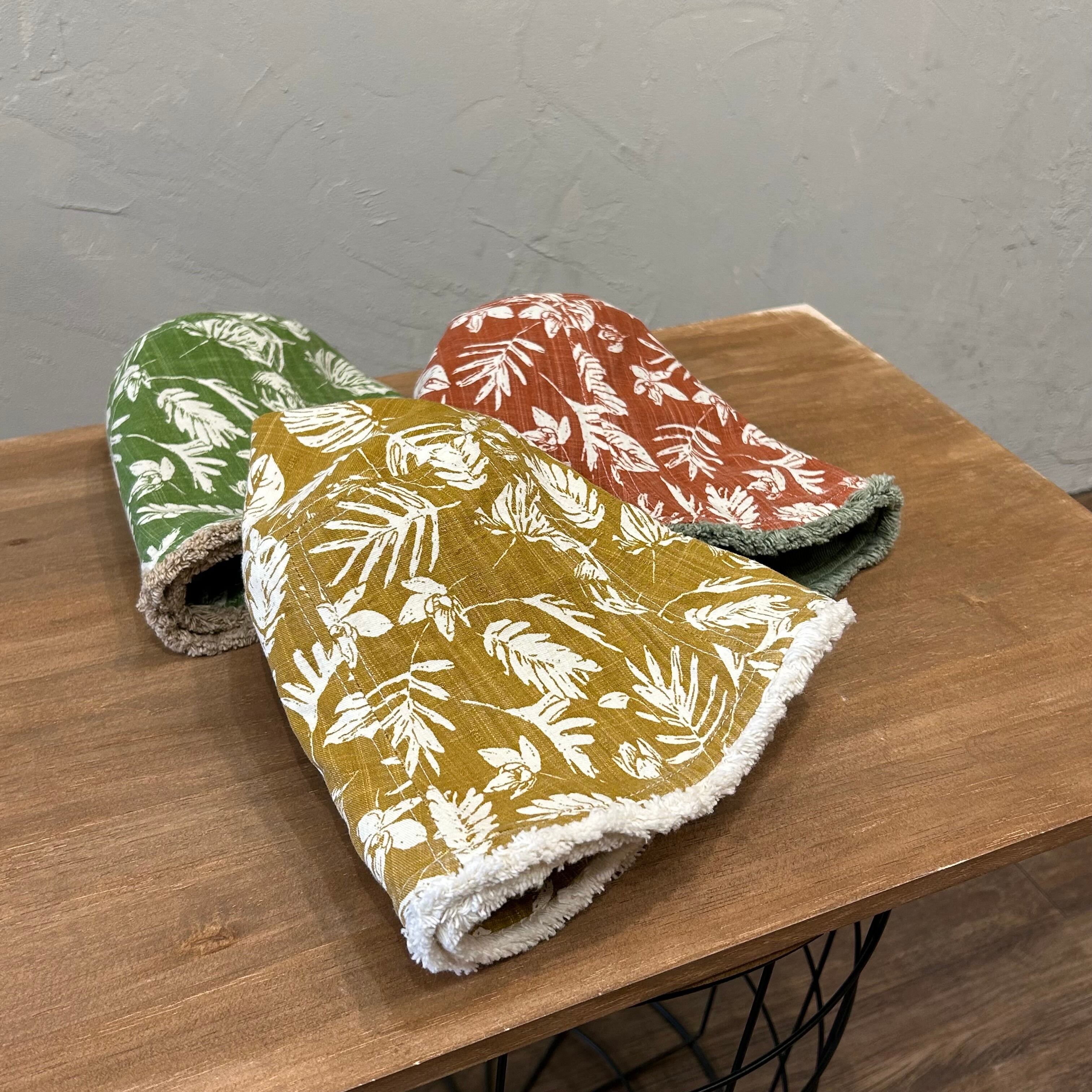 シンプルな無地とレトロなかすれ風ボタニカル柄の両面仕様。