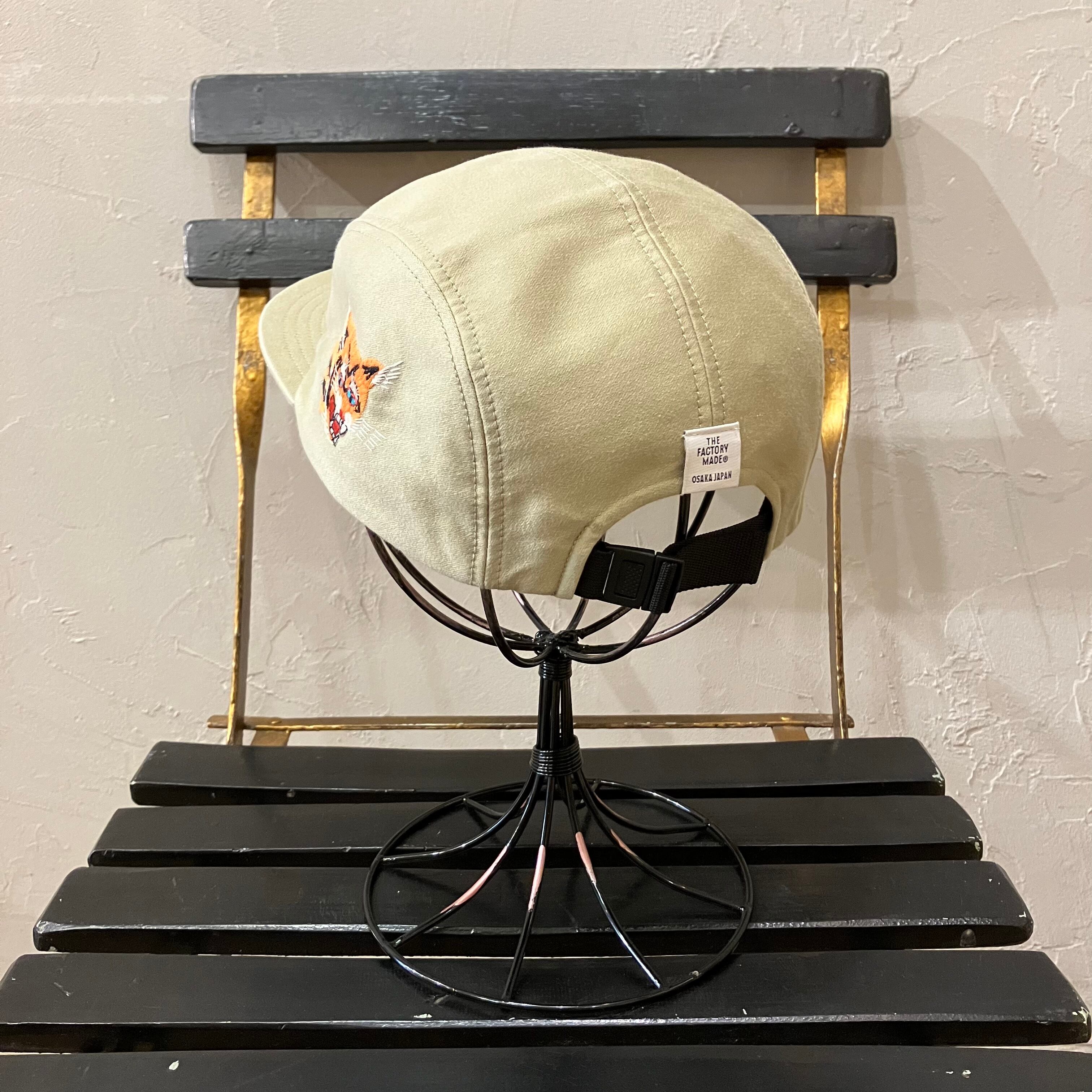 ベトジャンから着想を得た“福”のワッペンと“虎”の刺繍でデザインされたキャップ。