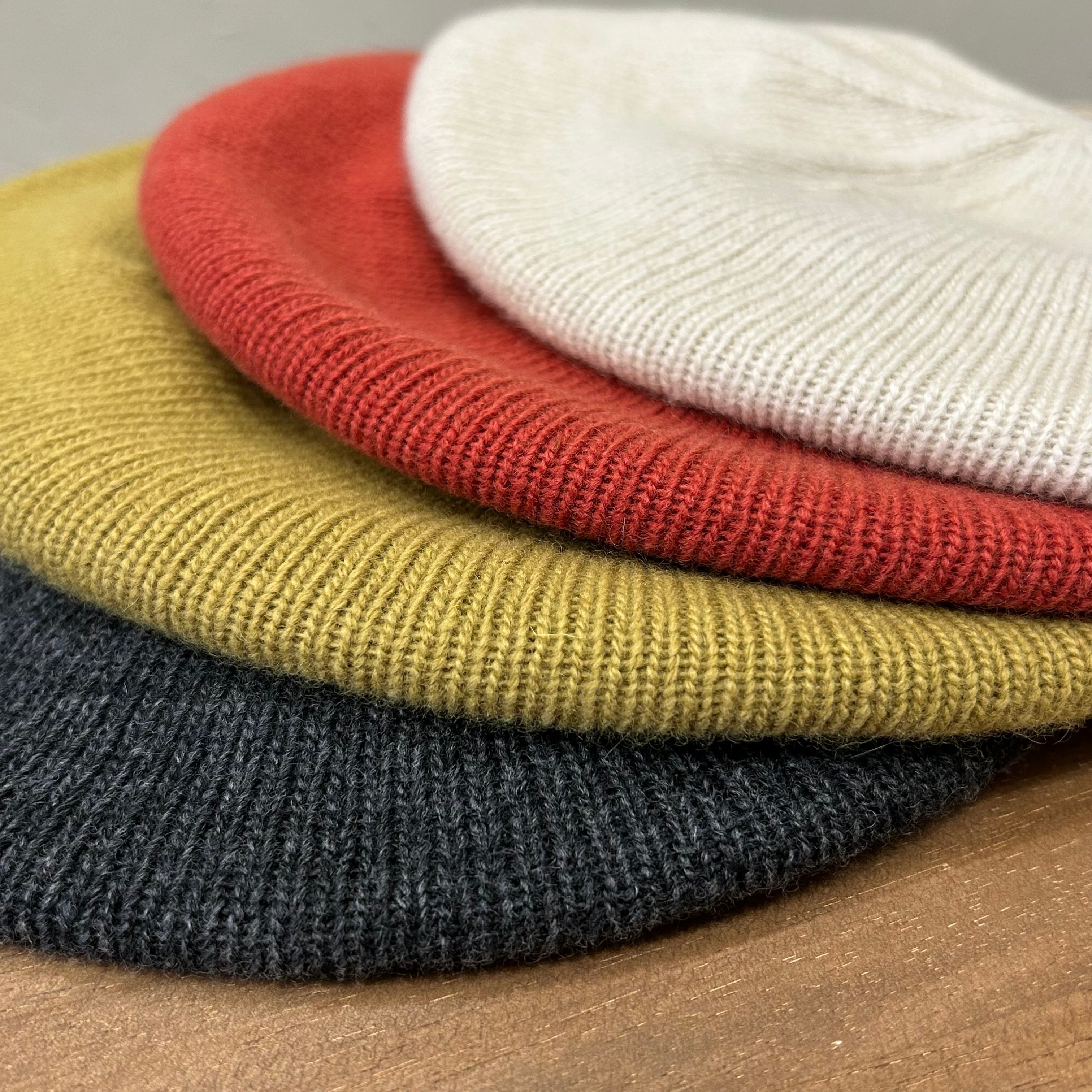 ベースのウール素材にカシミアとナイロンをMIXしたニットベレー。