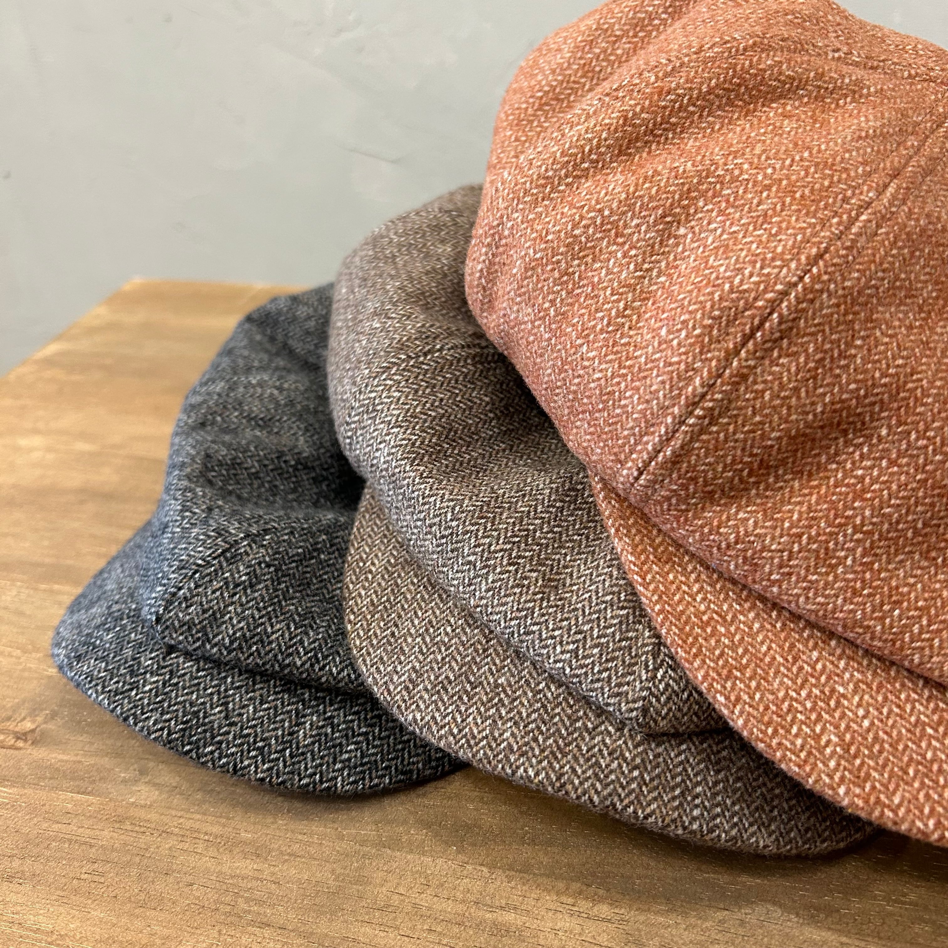 クラウンの動きを利かせて被るキャスケットに比べて、サイドのボリュームを無くし、ハンチングに近いシルエットに仕上げられています。