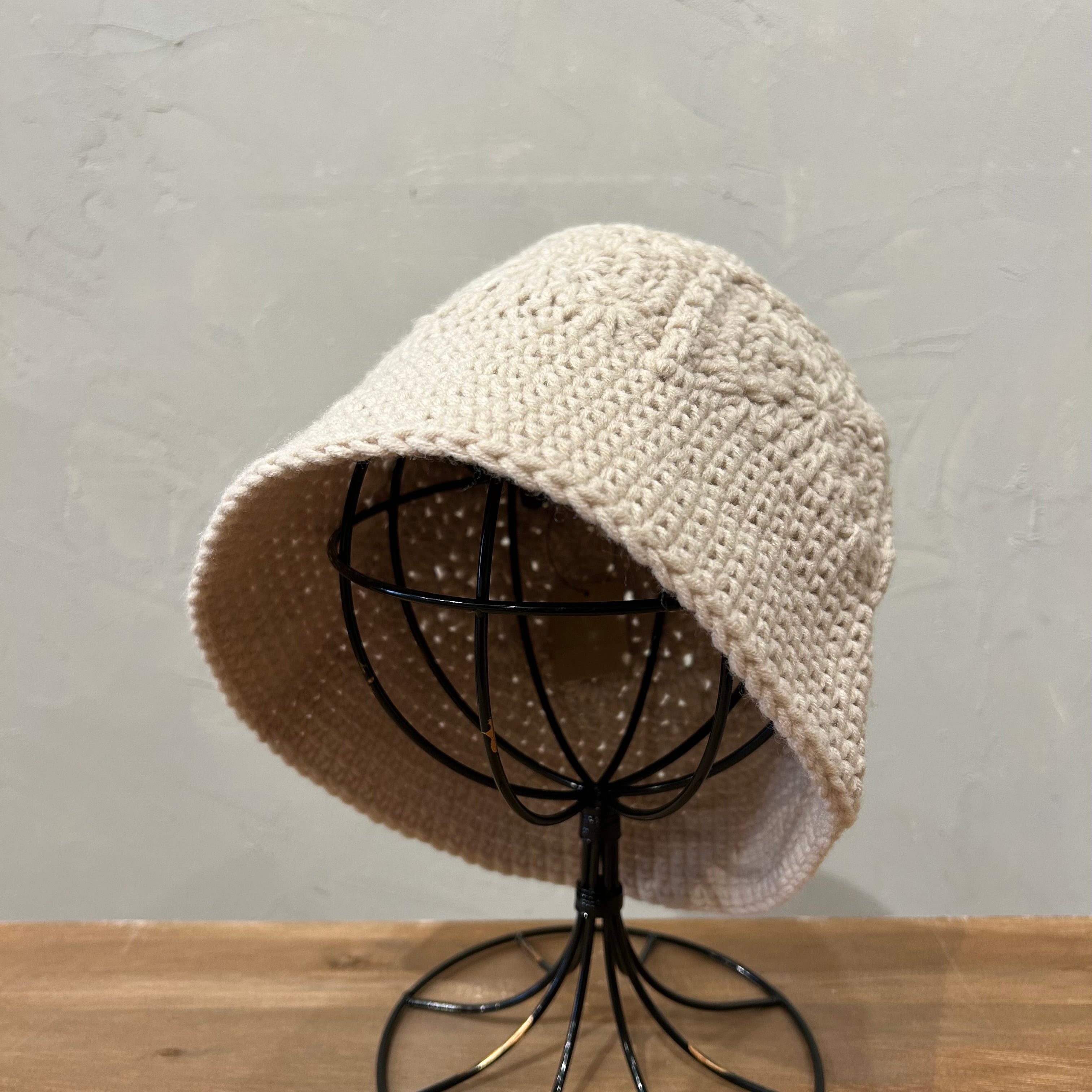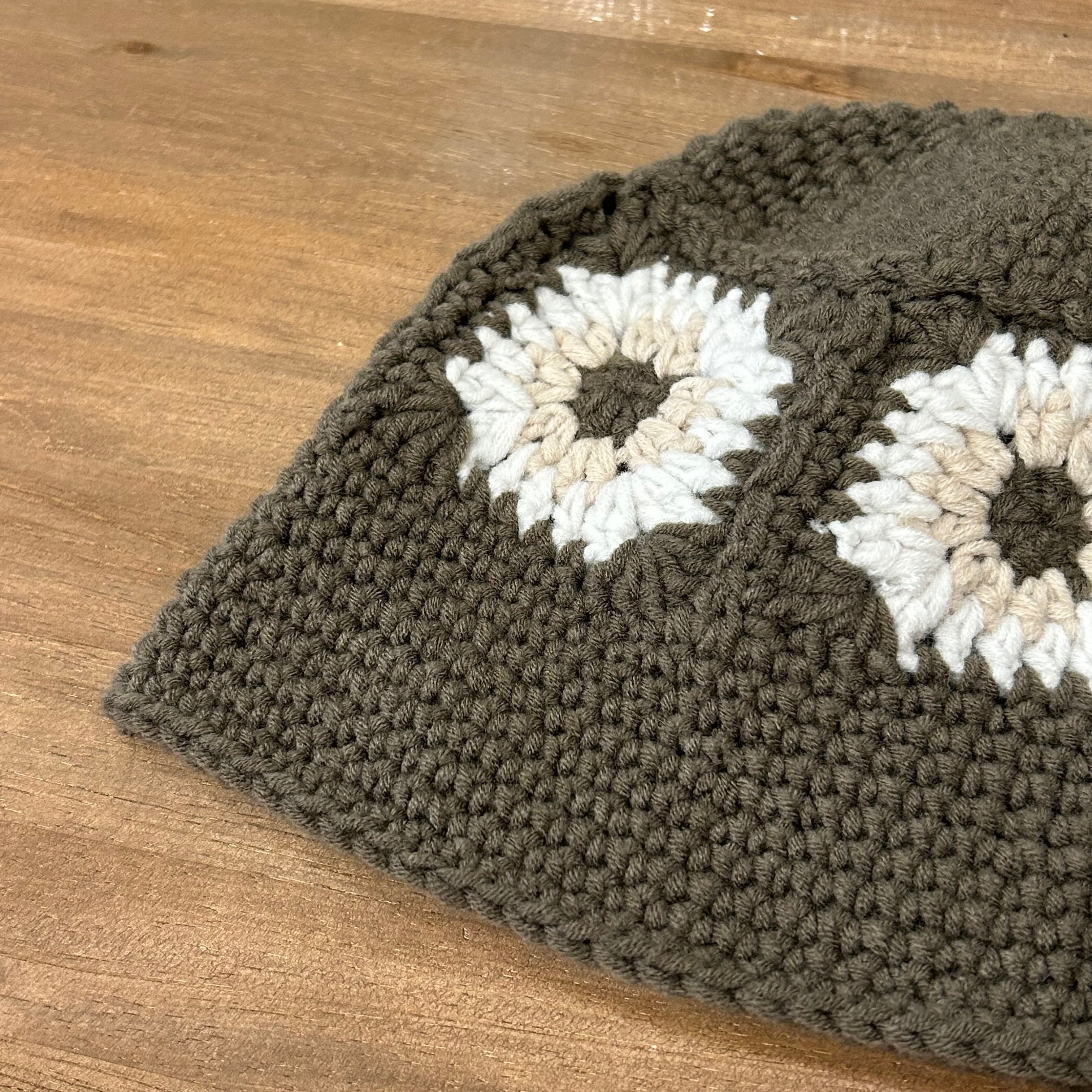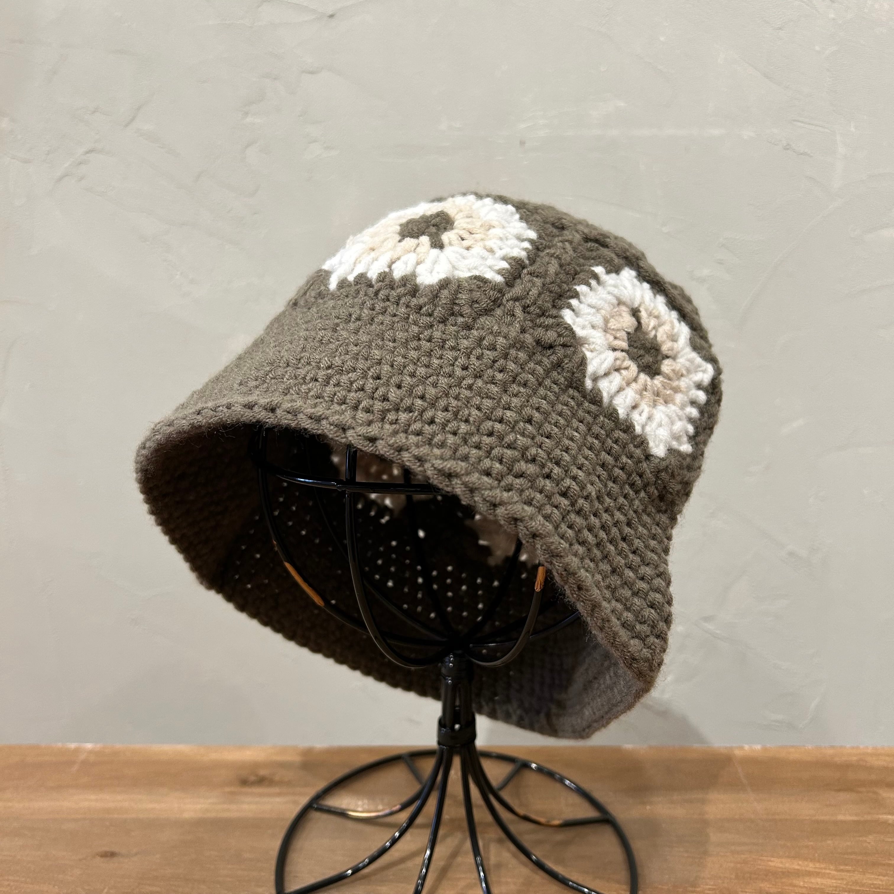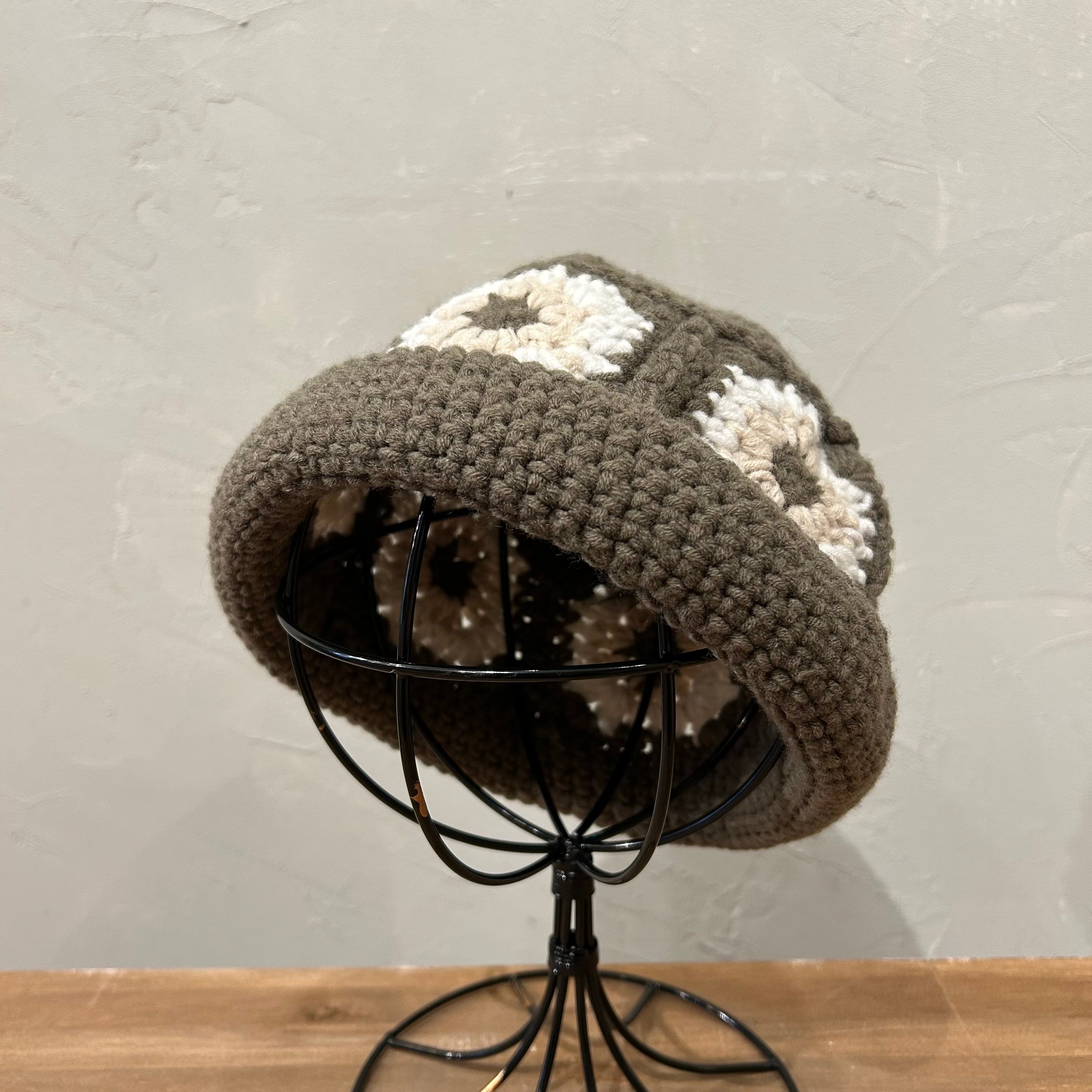 糸を束ねざっくりと編まれたグラニースクエアハット。
