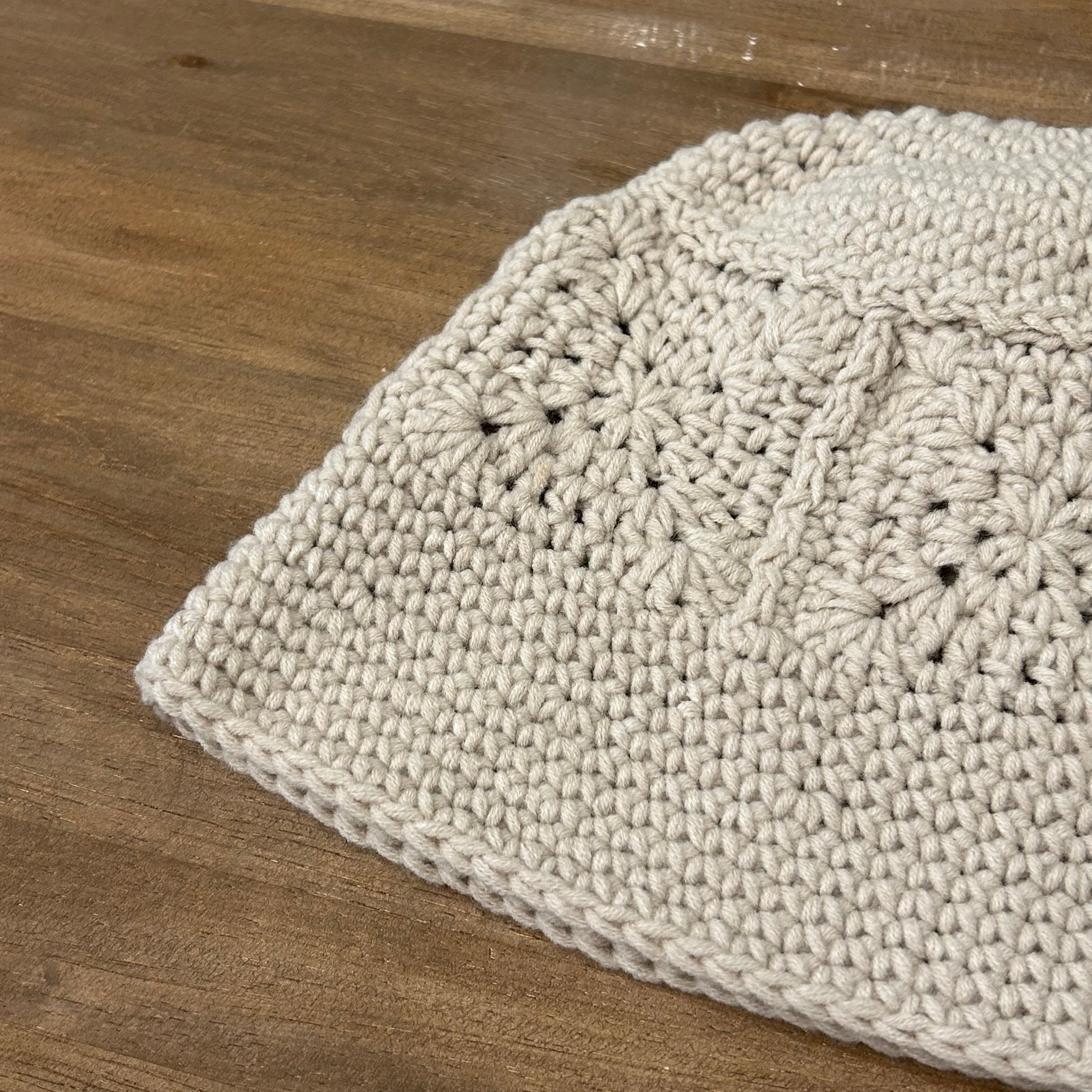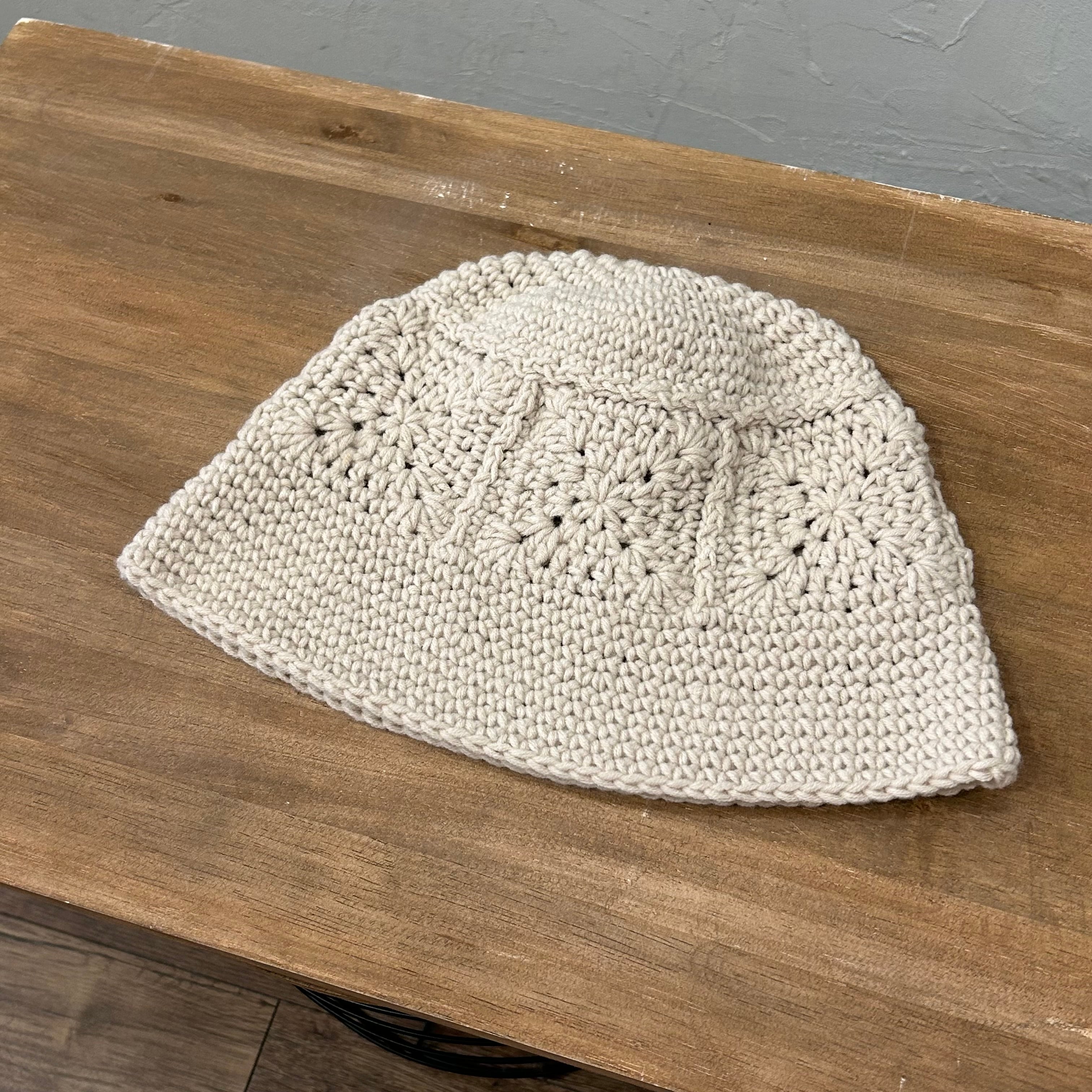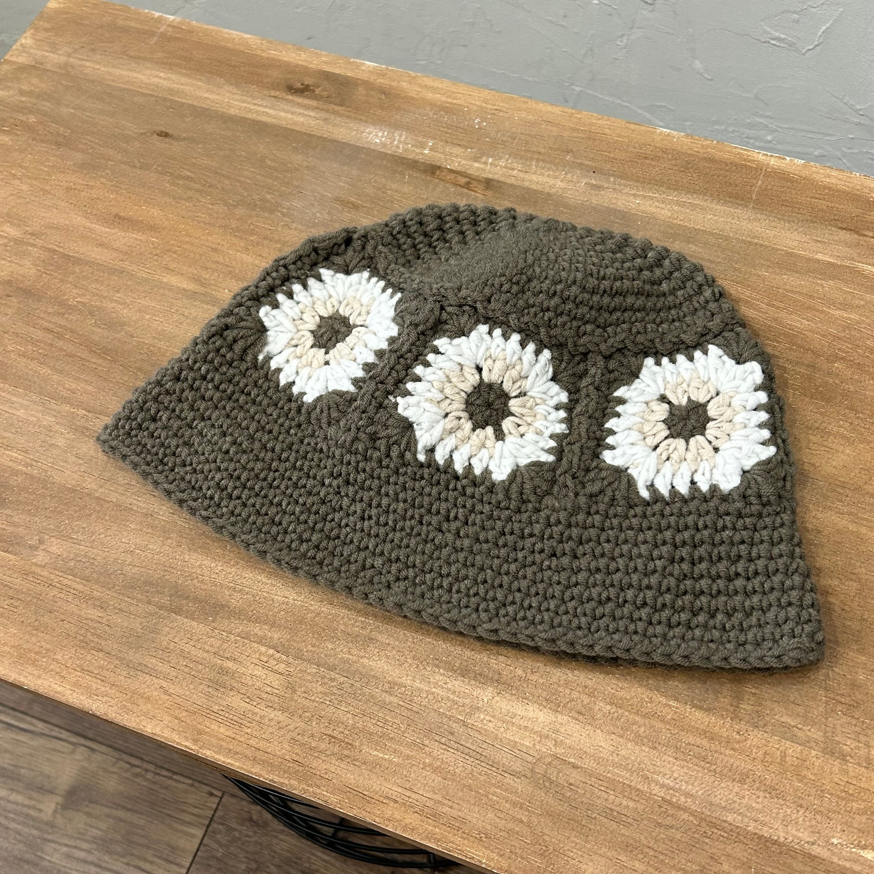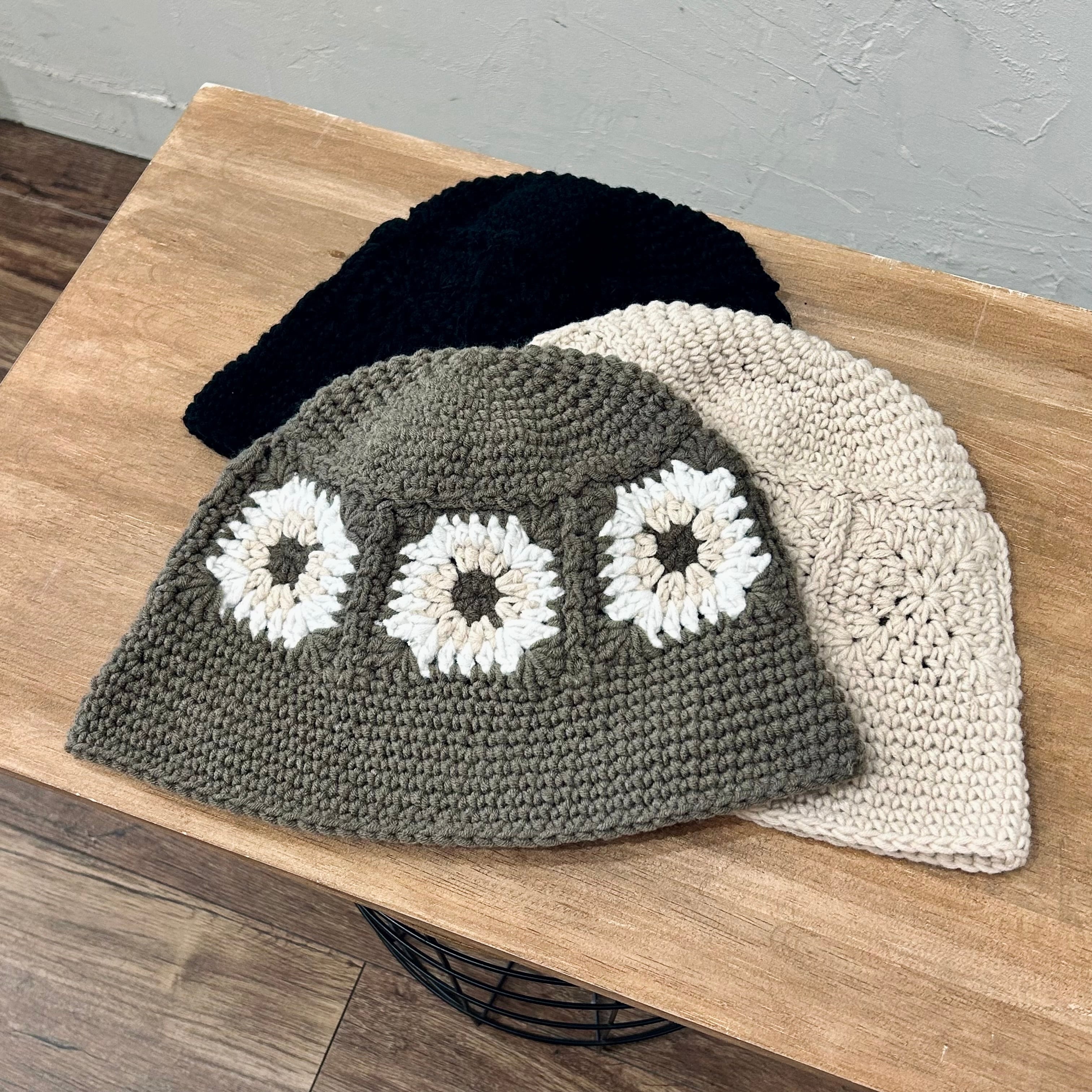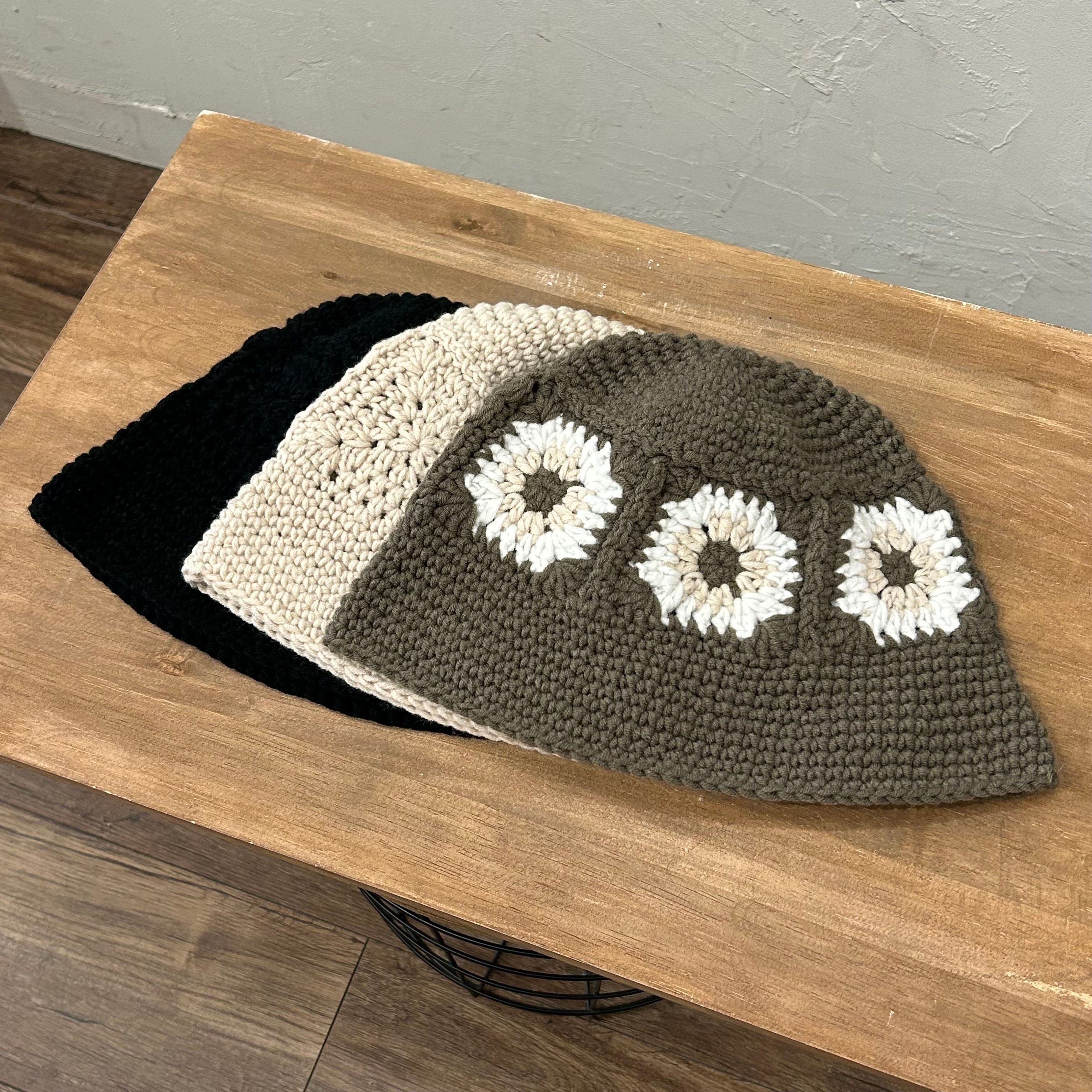 糸を束ねざっくりと編まれたグラニースクエアハット。